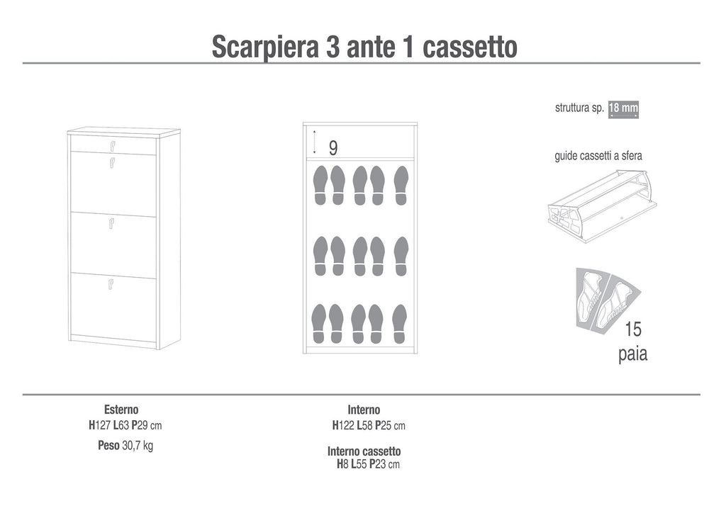 - Capacità: 15 paia