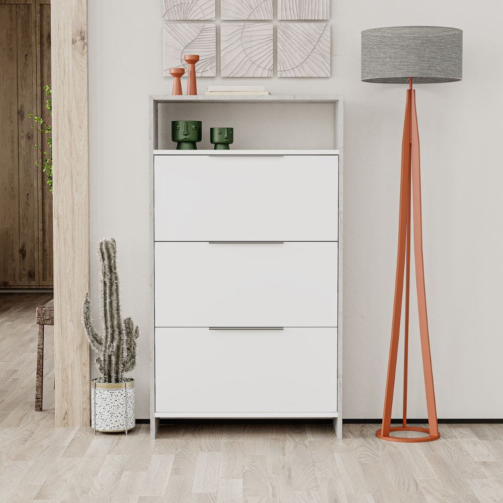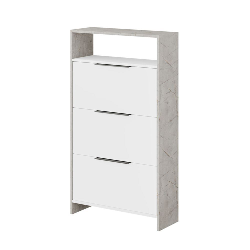 - Scarpiera Kaju con 3 ante ribaltabili, struttura effetto marmo grigio e frontali bianchi