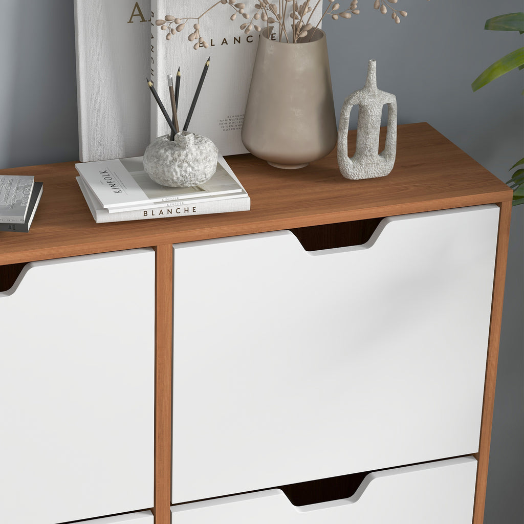 Scarpiera 4 Ante 16 Paia di Scarpe 95x26x95 cm in Truciolato e Legno di Pino Naturale e Bianco