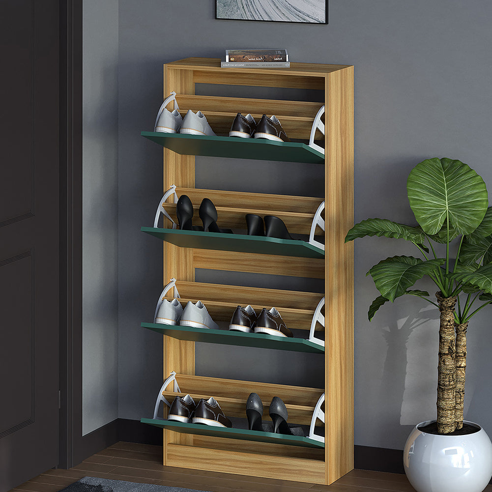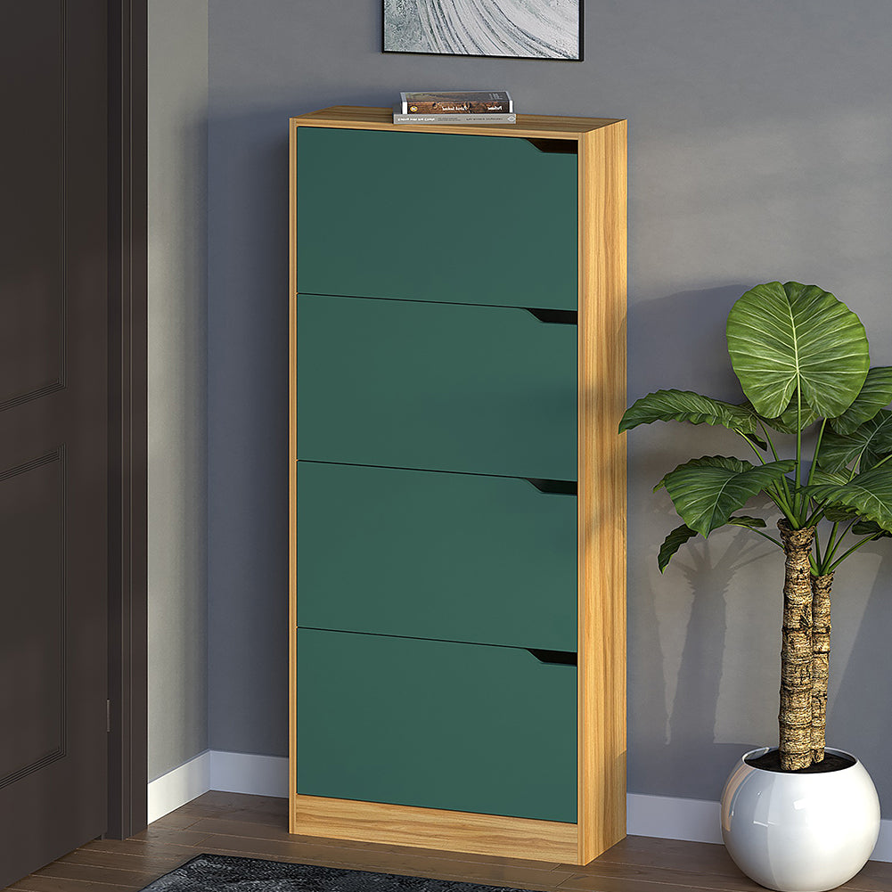 Scarpiera 4 Ante 63x24x150 cm Ripiani Doppia Profondità in MDF Quercia e Verde