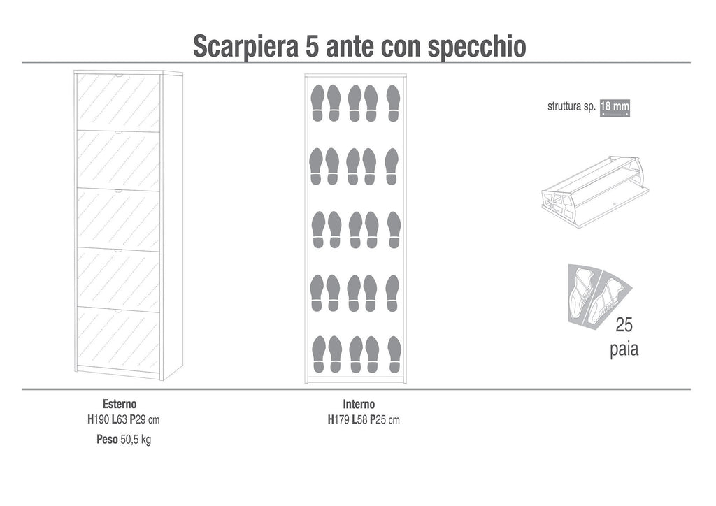 - Capacità: 25 paia di scarpe