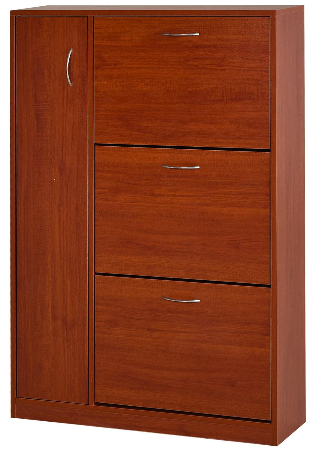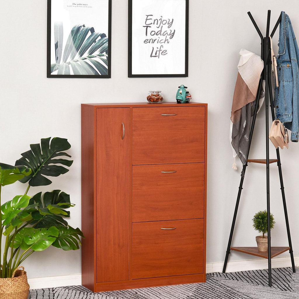 Scarpiera con 3 Ante a Ribalta e un'Anta Porta Ombrelli in Legno Noce 80x24x120 cm