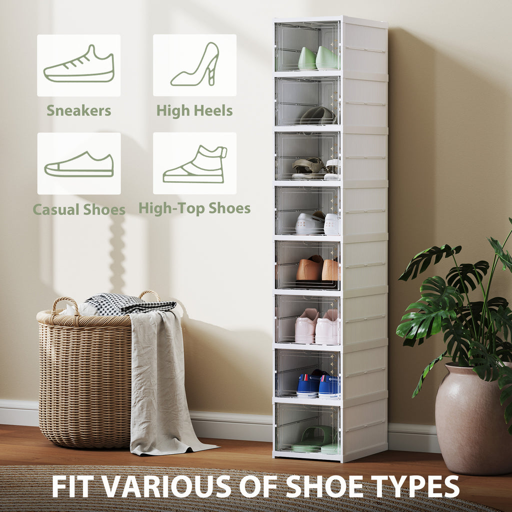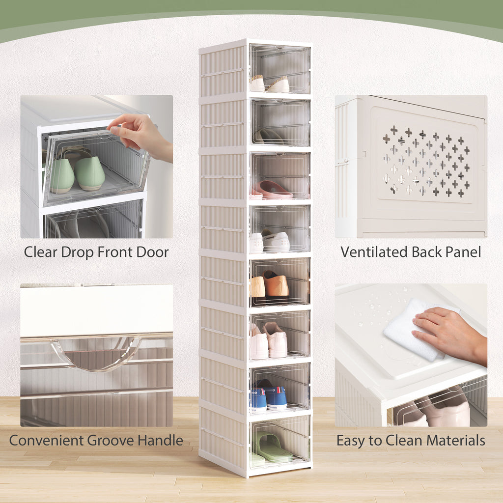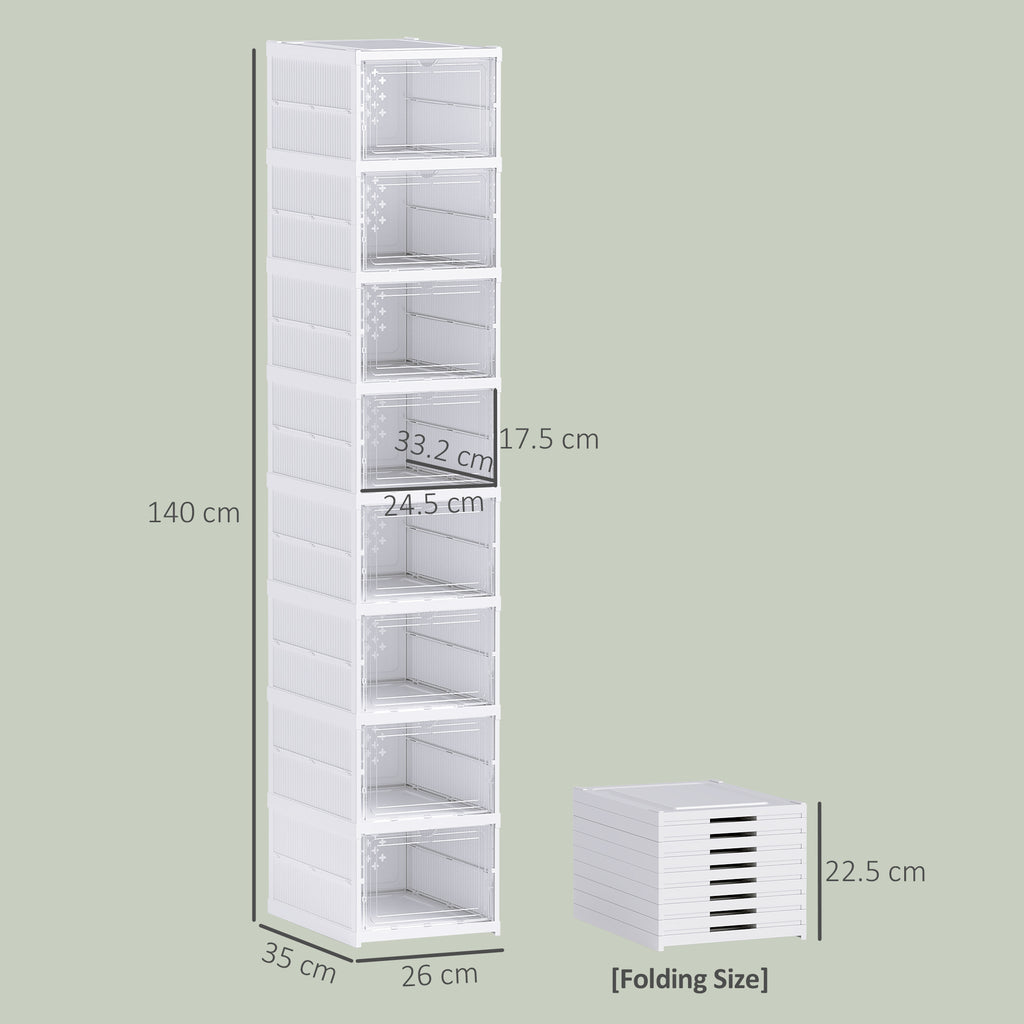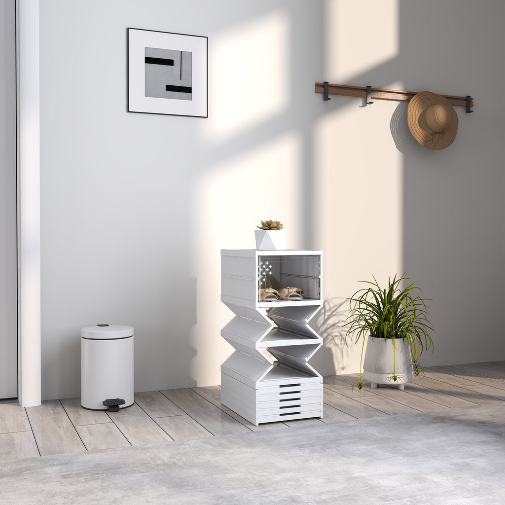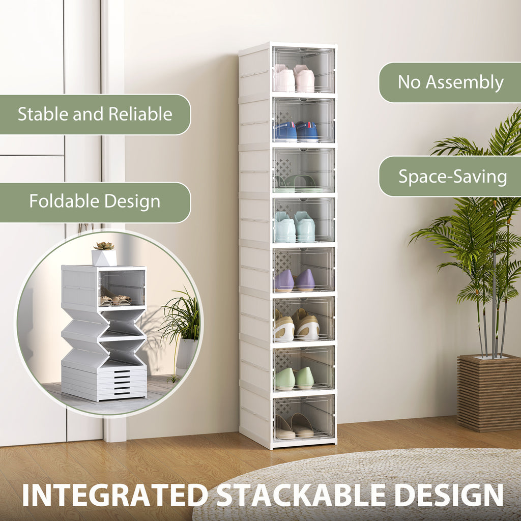 Scarpiera con 8 Contenitori Impilabili e Pieghevoli per 8 Paia di Scarpe Bianco