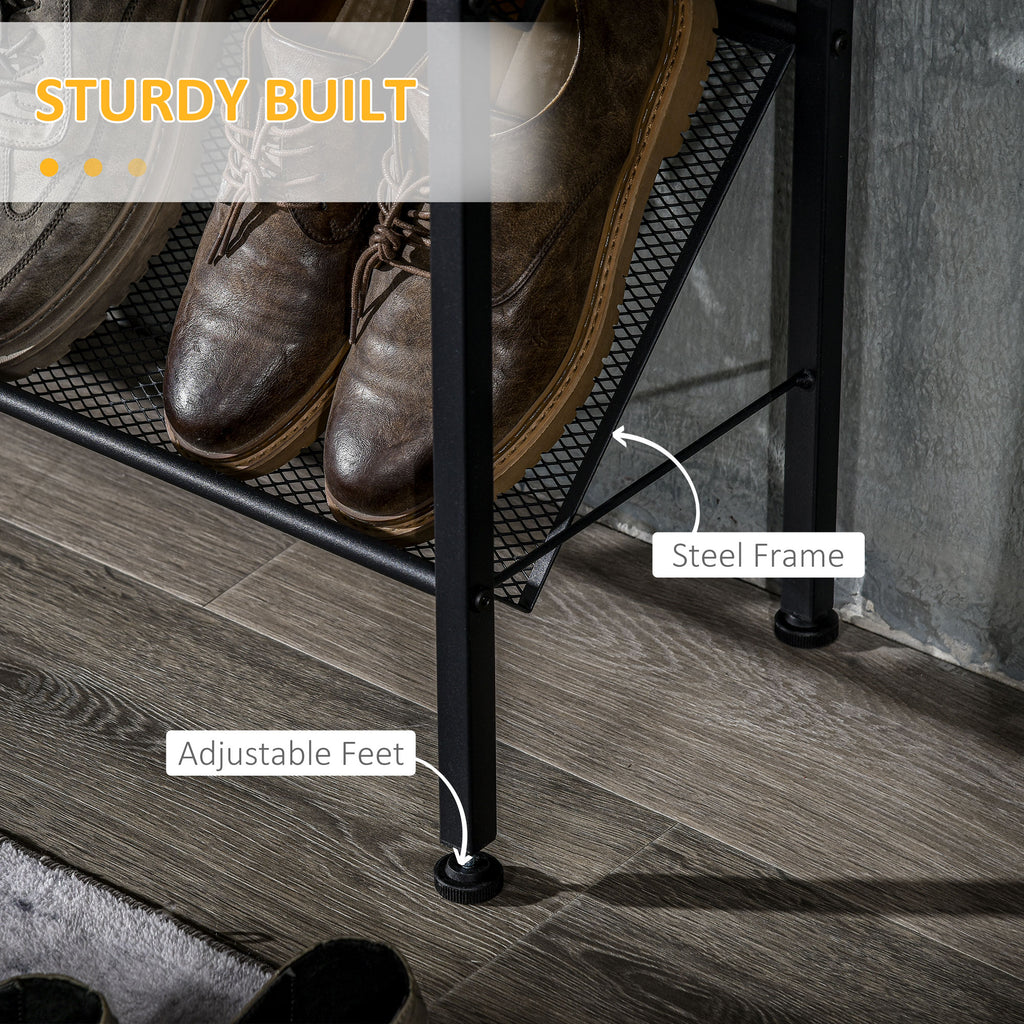 Scarpiera da Ingresso 9 Paia di Scarpe 70x26x89 cm 3 Ripiani e Piano d'Appoggio in Acciaio e Truciolato Nero