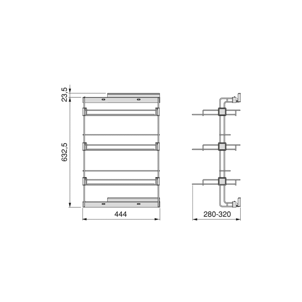 Questa scarpiera dispone di una notevole capienza grazie ai tre vassoi ribaltabili che possono essere installati orizzontalmente o inclinati a 90°. Viene fornito 1 scarpiera laterale destra o sinistra, 1 set di guide e rifiniture, con 4 viti Ø4x16mm per il montaggio. È realizzato in acciaio con finitura verniciata testurizzata in grigio pietra o nero, a seconda del modello selezionato.