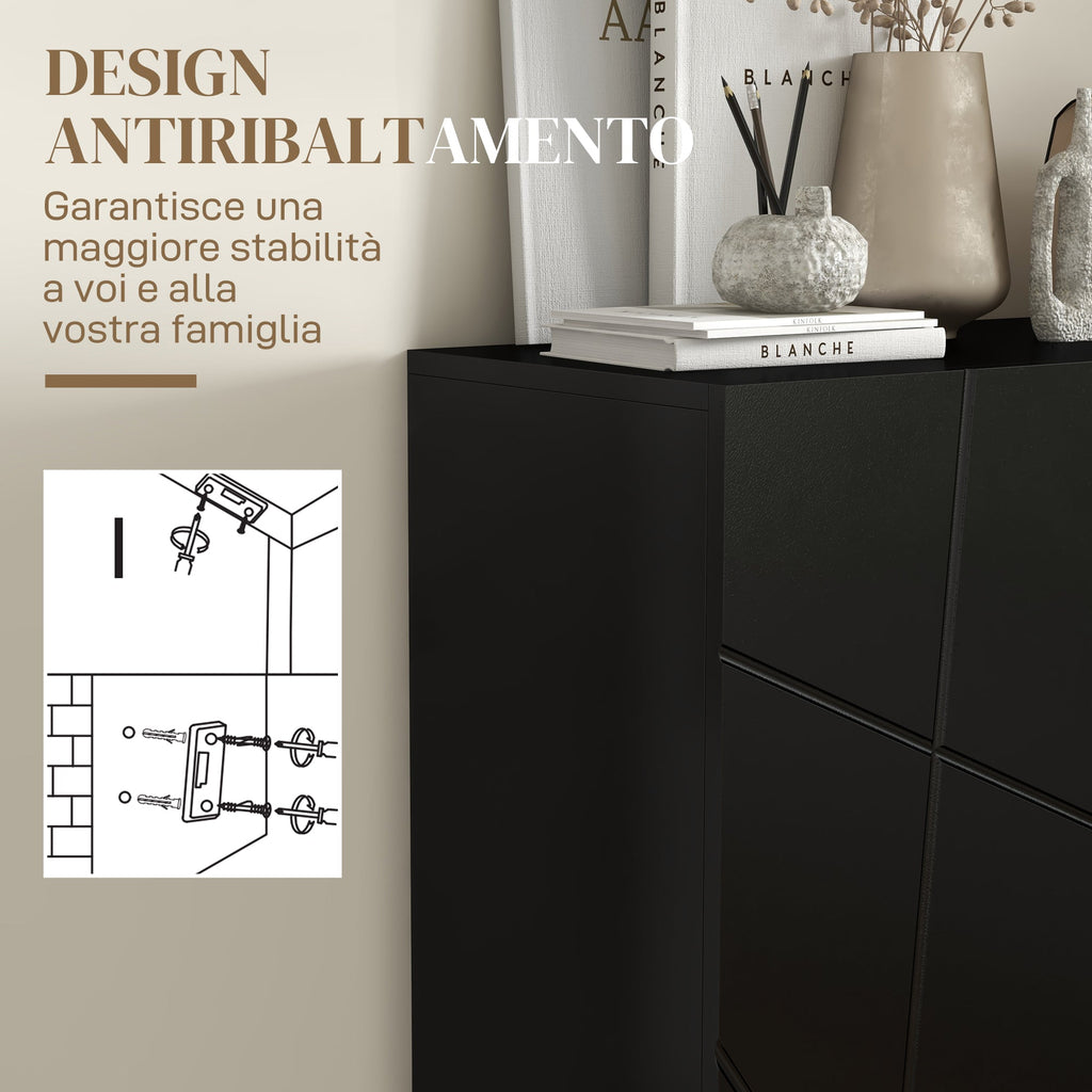 Scarpiera Moderna per 15-20 Paia di Scarpe Ripiani Regolabili Chiusura Ammortizzata Nero