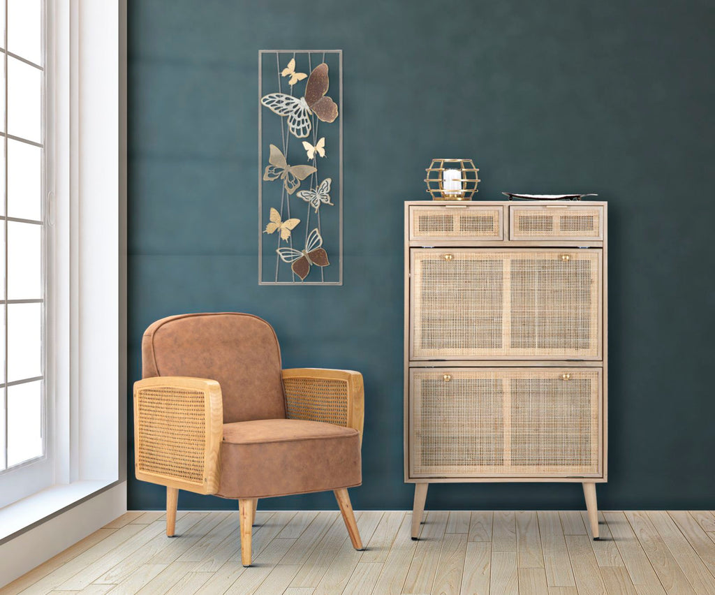 Scarpiera Paglia di Vienna 70x32x120 cm MDF e Impiallacciatura di frassino Marrone