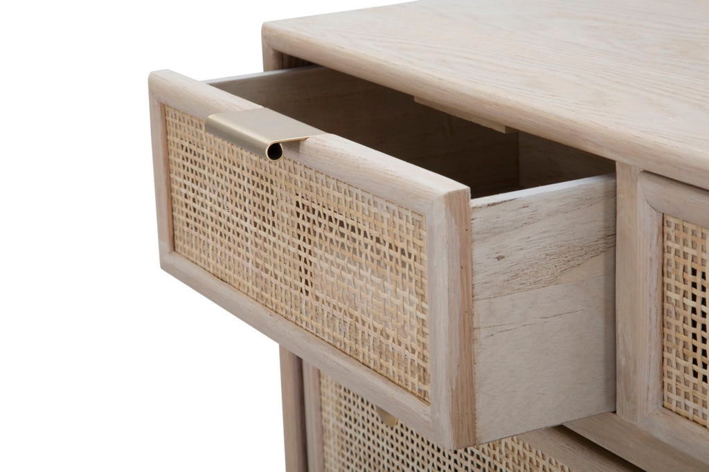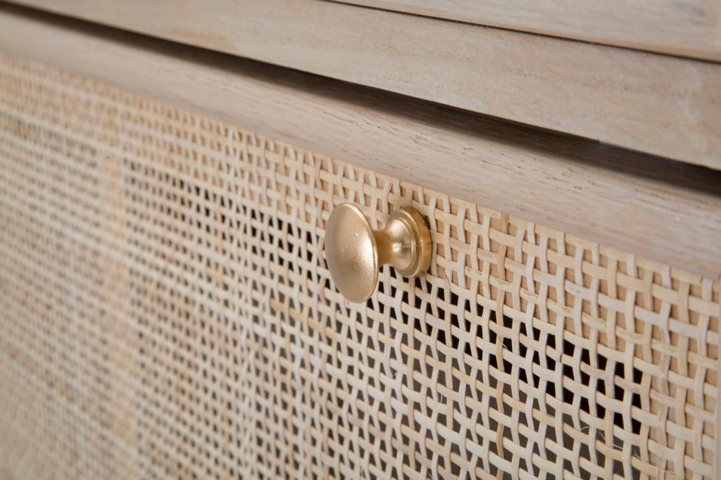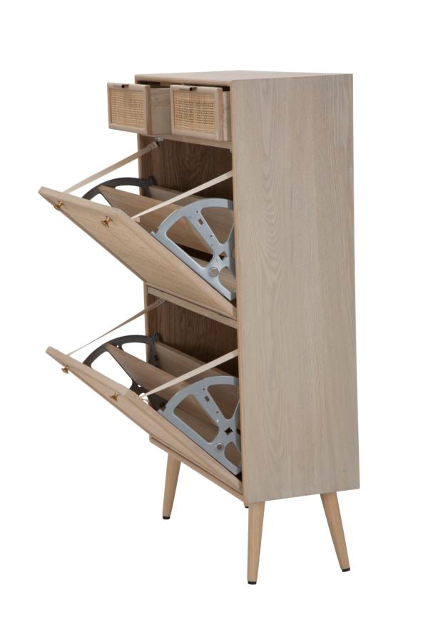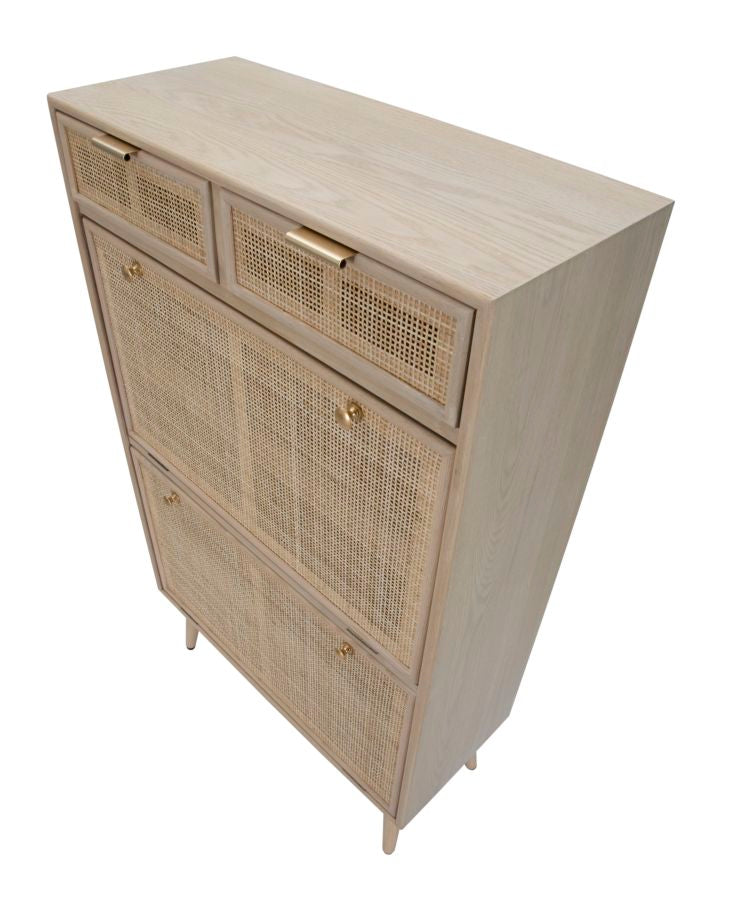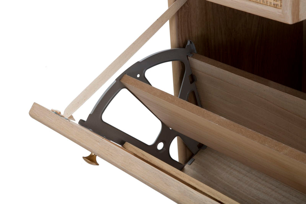 Scarpiera in legno e paglia di Vienna con 2 scomparti e 2 cassetti. Il classico si fonde con lo stile glam per creare un effetto unico.