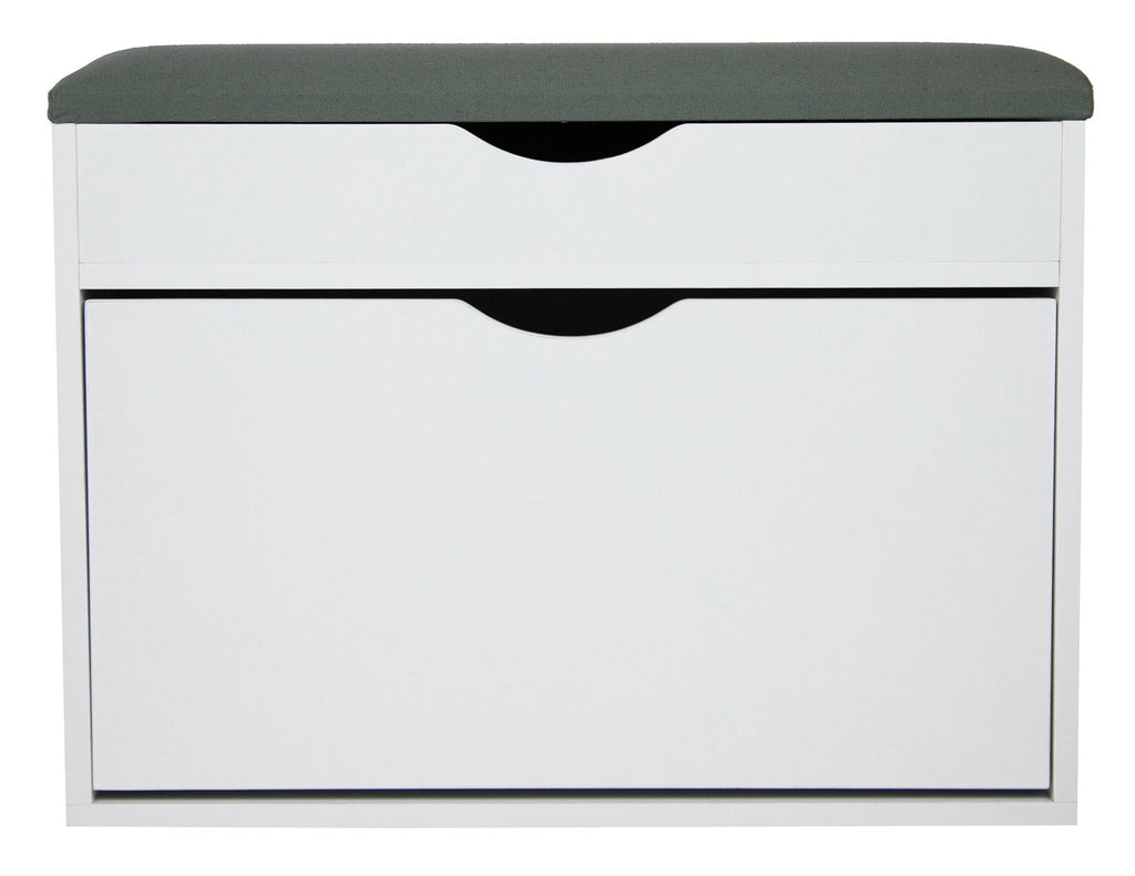 Scarpiera Panca con Scomparto e Cuscino 60x30x50 cm in PB e Carta Bianco