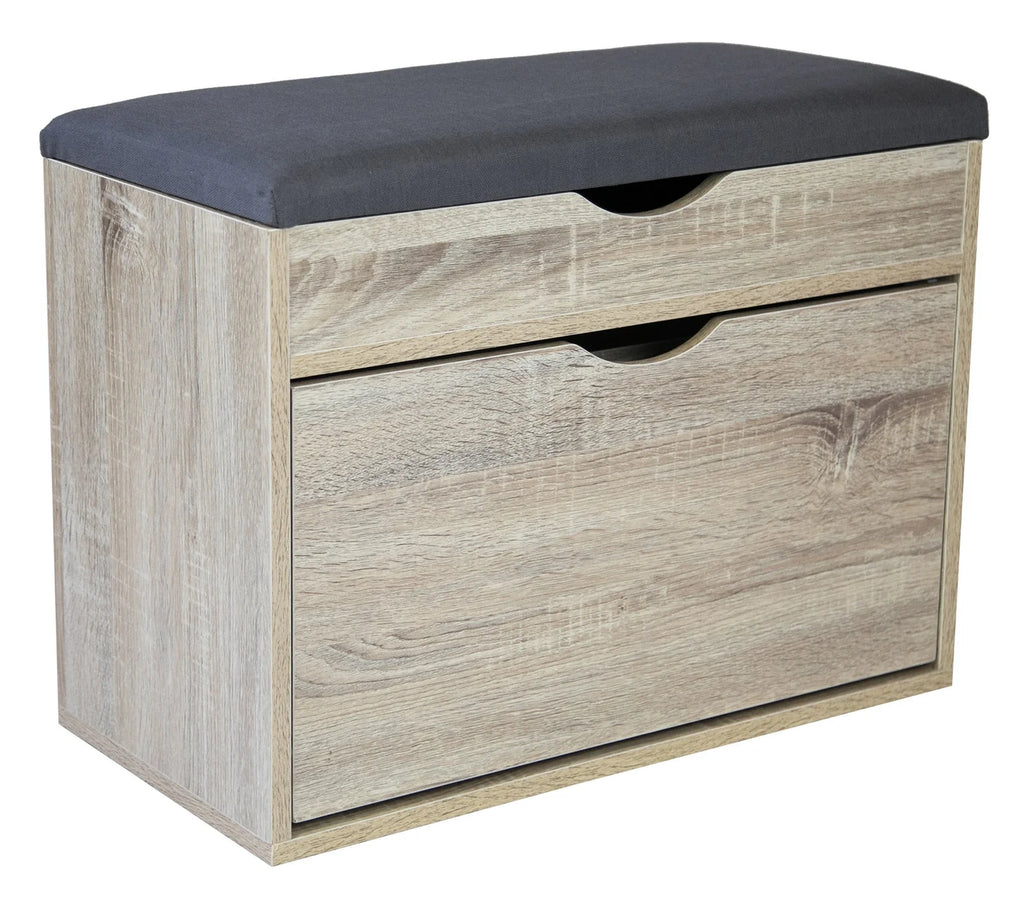 Scarpiera Panca con Scomparto e Cuscino 60x30x50 cm in PB e Carta Sonoma