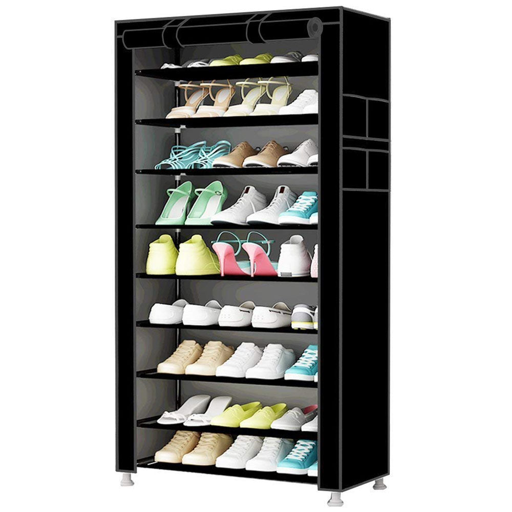 Scarpiera Salvaspazio 10 Ripiani 27 Paia Scaffale Acciaio e Tessuto TNT Nero