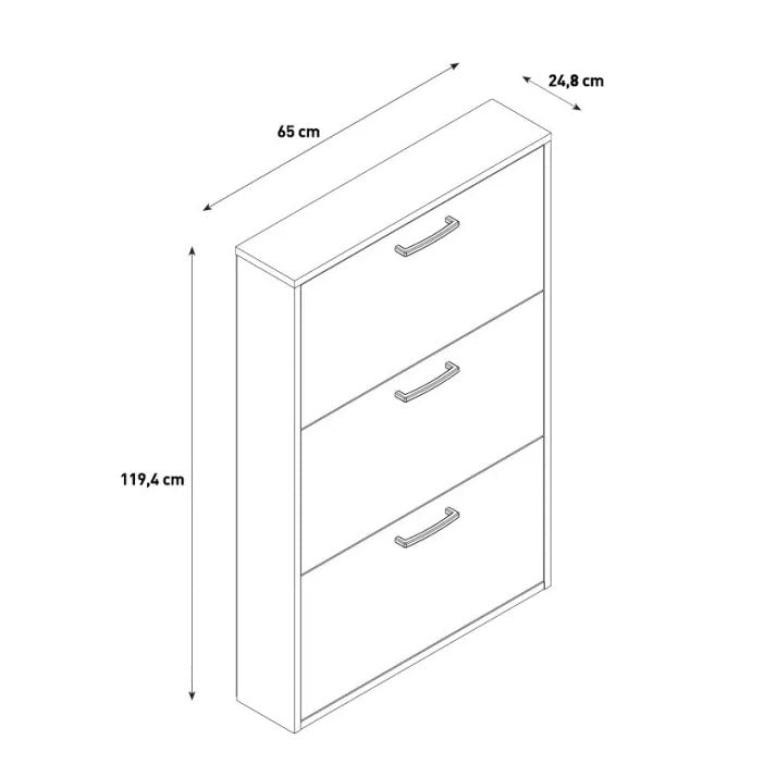 Semplice nel design questa scarpiera è la soluzione ideale per ottimizzare lo spazio in casa, per chi ha poco spazio, riordinare le tue scarpe e arredare facilmente qualunque ambiente della tua casa. La sua profondità ridotta ti consente infatti di sfruttare al meglio anche gli angoli più piccoli in modo da poterla posizionare ad esempio dietro la porta d’ingresso, in corridoio, nel sottoscala, in uno sgabuzzino o nella cabina armadio. Dotata di 3 comodi a doppia profondità che accolgono fino a 18 paia di scarpe e sono completi di maniglie che facilitano l’apertura delle ante a ribalta per riporre le scarpe in modo pratico e poco ingombrante. Realizzata interamente in Italia con materiali di alta qualità selezionati per garantire la lunga durata nel tempo e l’elevata resistenza agli urti, ai graffi, all’uso quotidiano e al tempo stesso rende la scarpiera facile da pulire.