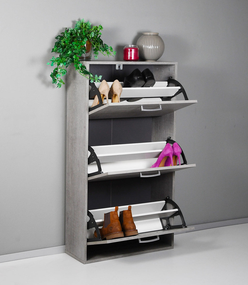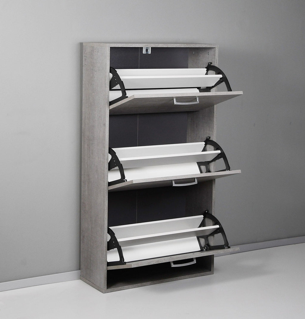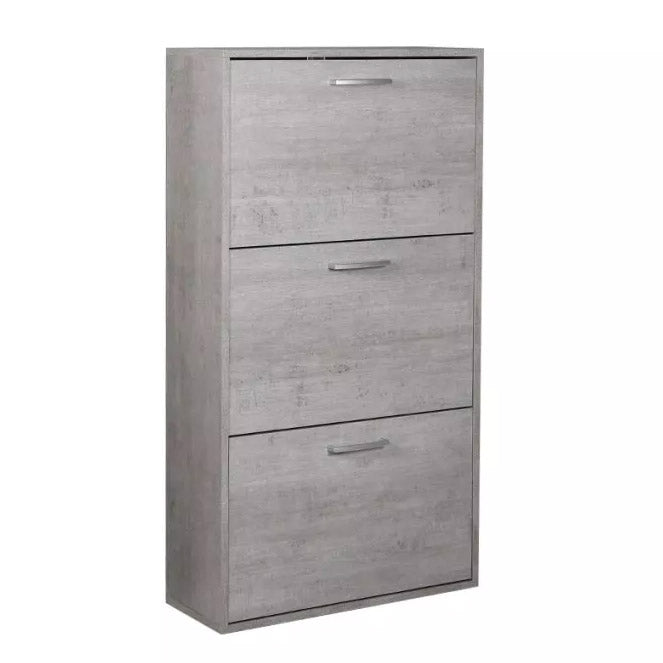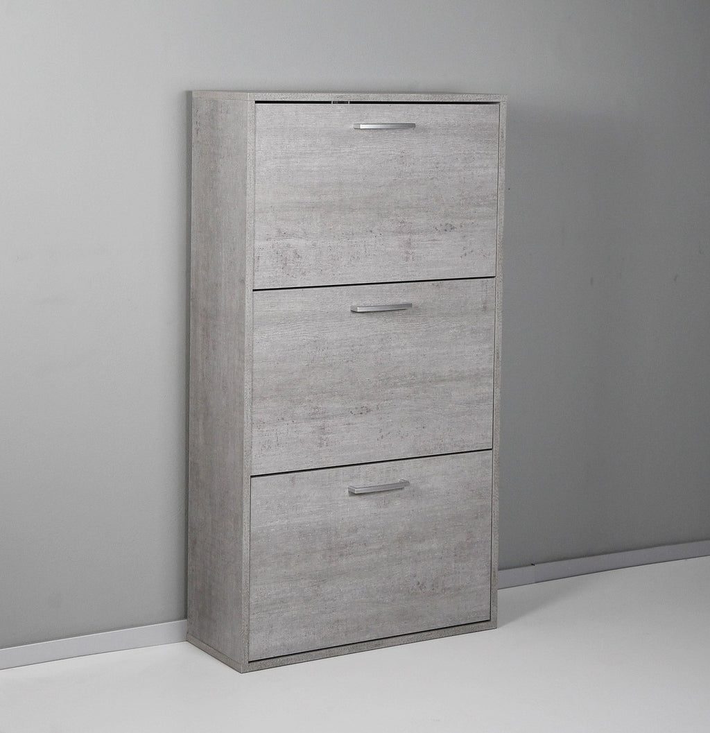 Scarpiera Salvaspazio 3 Ante Doppia Profondità 18 Paia 65x25x119,4 cm in Truciolare Nobilitato Cemento