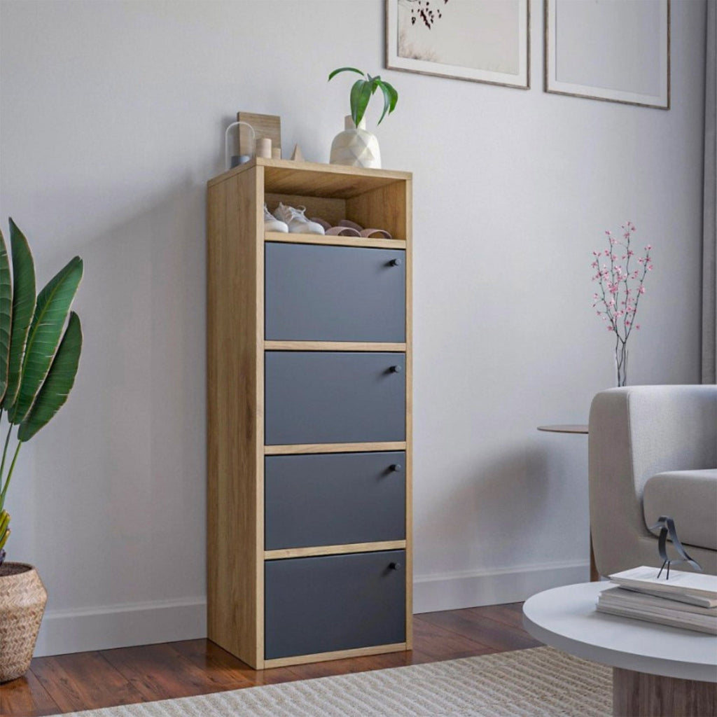 Scarpiera Salvaspazio 4 Ante 42x33x118h cm in Melaminico Venato a Rilievo Rovere e Nero