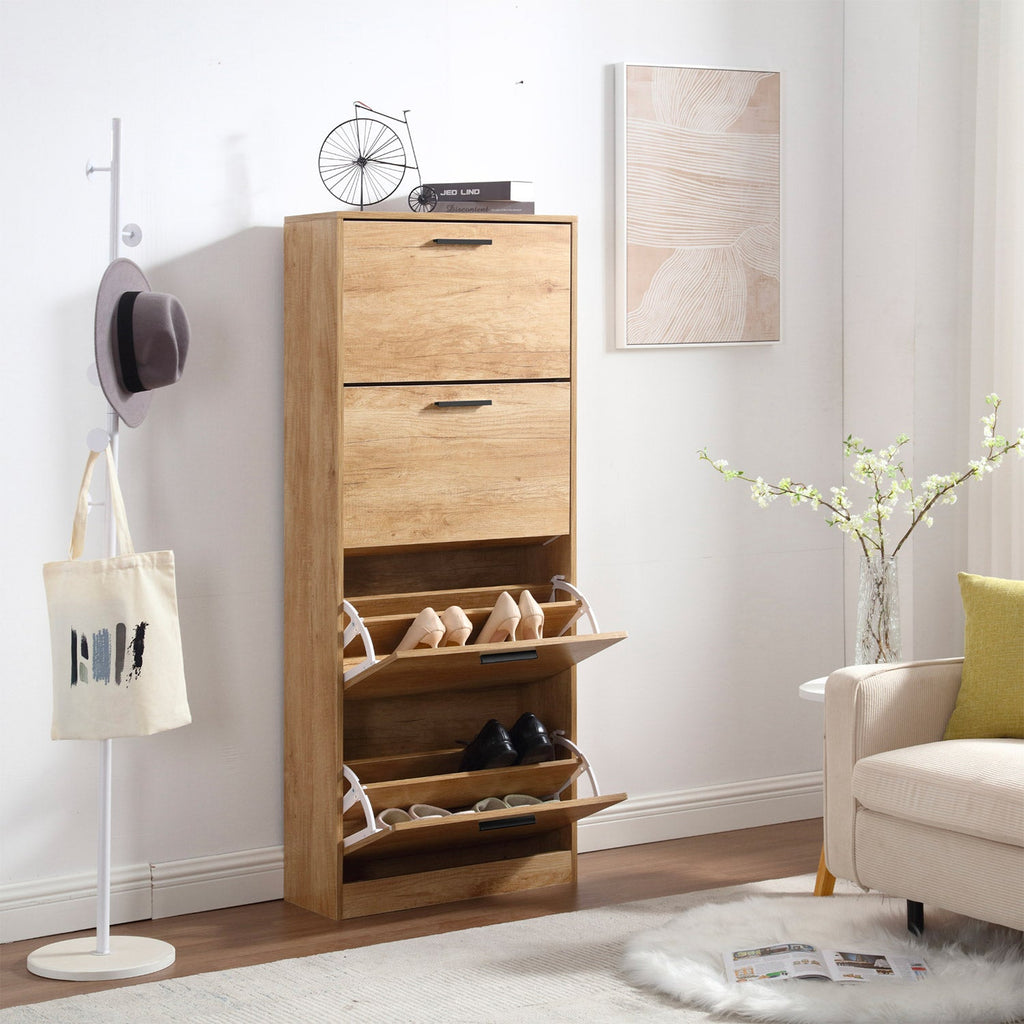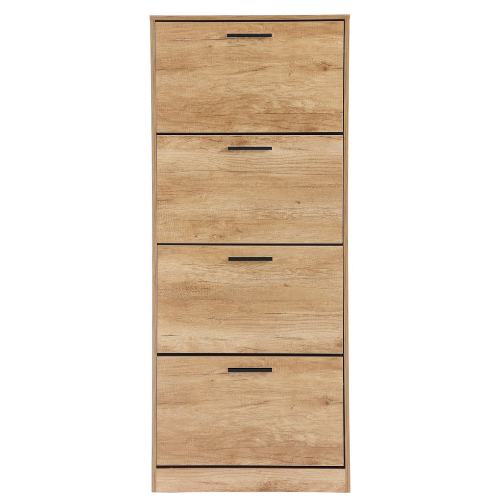 Scarpiera Salvaspazio 4 Ante a Ribalta 63x24x155h cm in Melaminico Venato a Rilievo Rovere