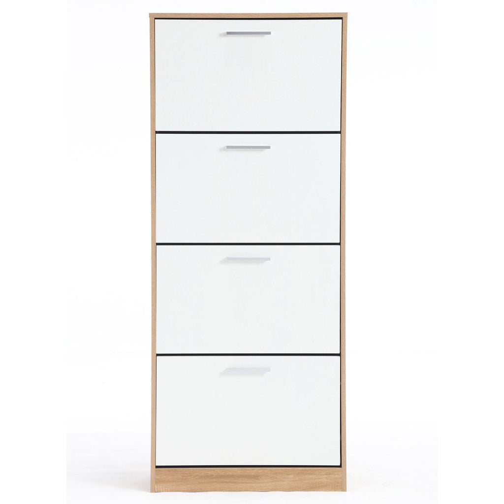 Scarpiera Salvaspazio 4 Ante a Ribalta 63x24x155h cm in Melaminico Venato a Rilievo Rovere e Bianco