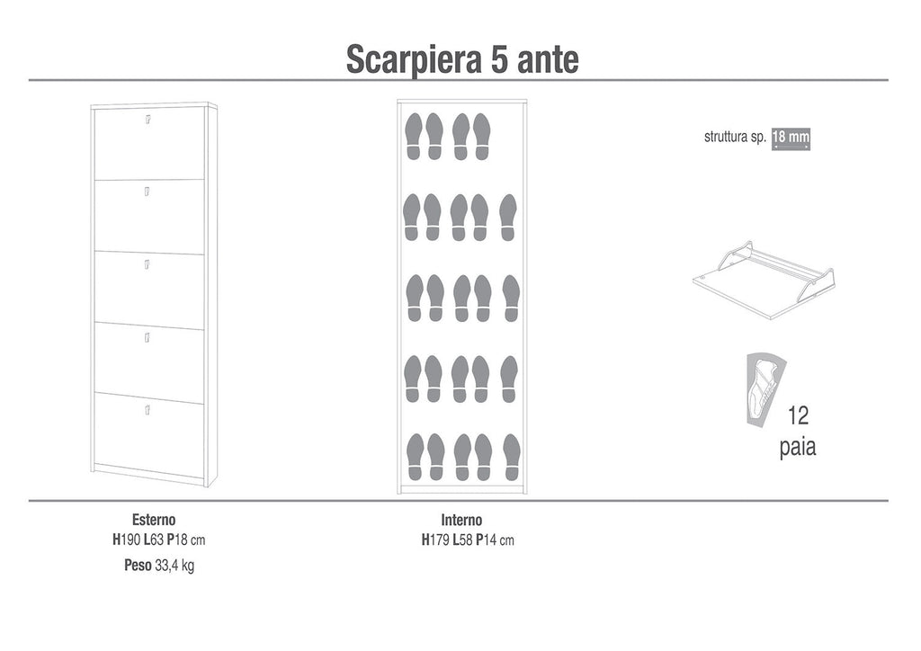 Scarpiera Salvaspazio 5 Ante 12 Paia 63x190x18 cm Noce Stelvio