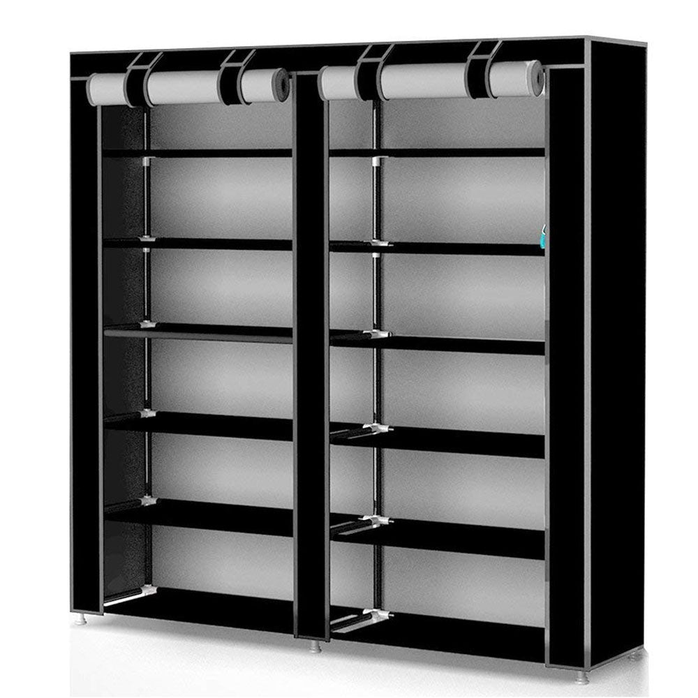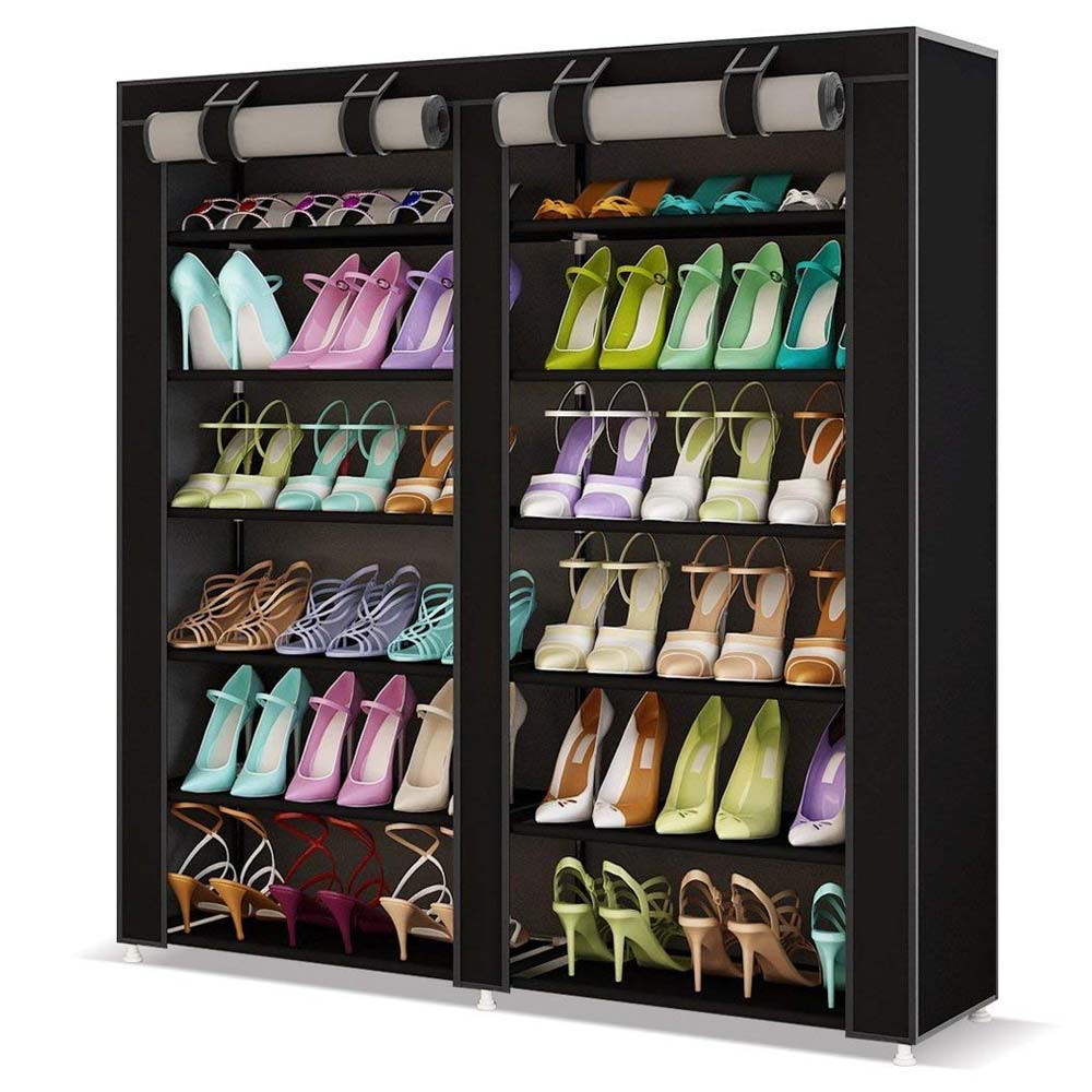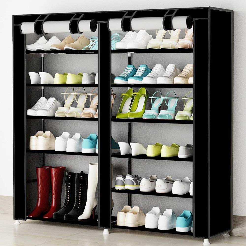 Scarpiera Salvaspazio 7 Ripiani 36 Paia Scaffale Acciaio e Tessuto TNT Nero