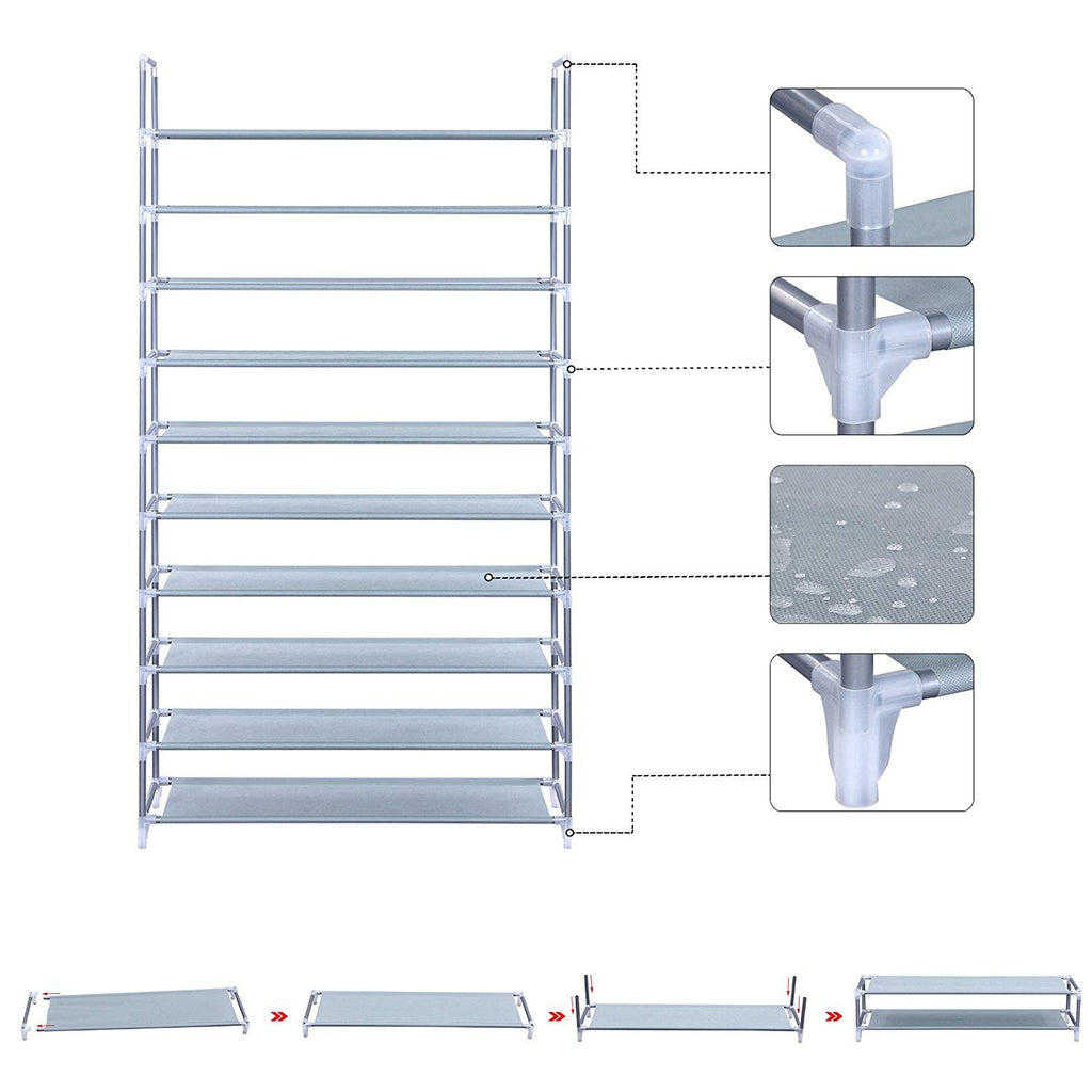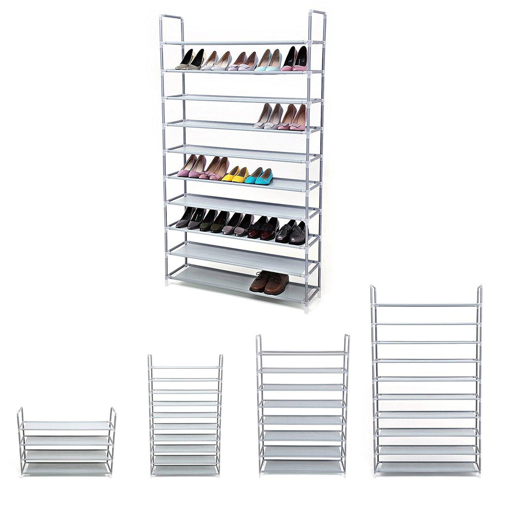 Scaffale Scarpiera leggera ma stabile s'inserisce bene in tutti gli ambienti come soggiorno, ingresso, garage, terrazzo e in ogni angolo della casa. I suoi dieci ripiani possono ospitare fino a di scarpe.