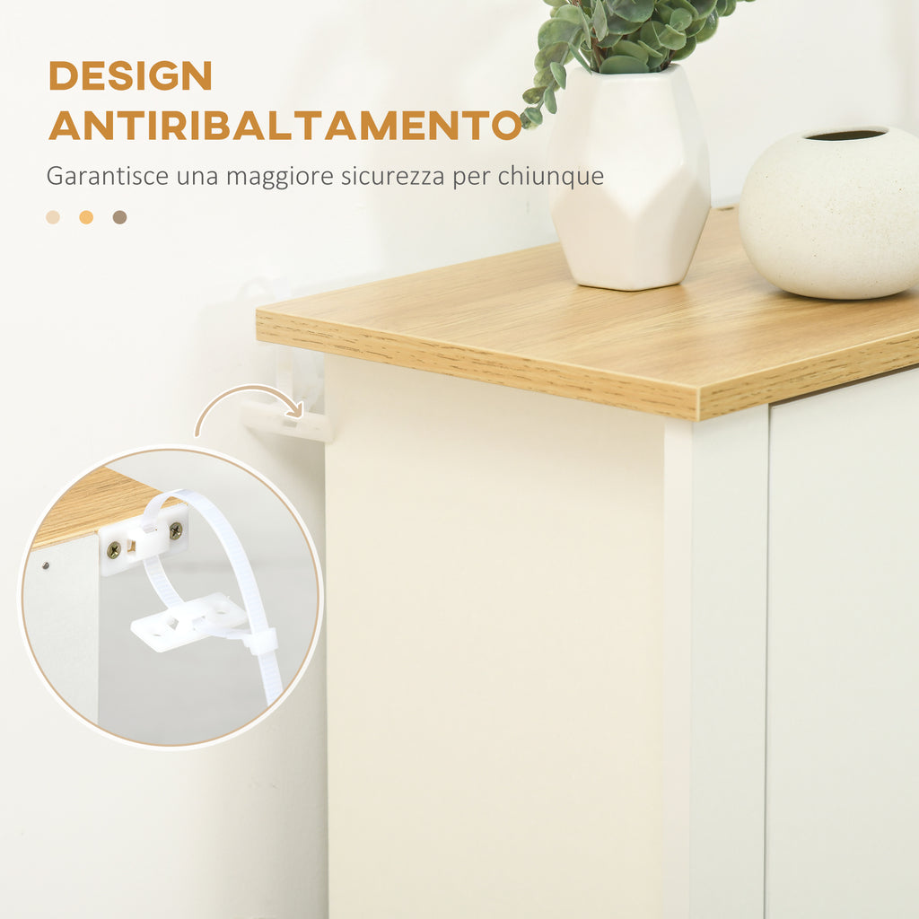 - DESIGN E QUALITÀ DI FABBRICAZIONE: realizzato in pannelli di truciolato E1 con venature di rovere e bianco; Sistema anti-ribaltamento sul retro per maggiore sicurezza.