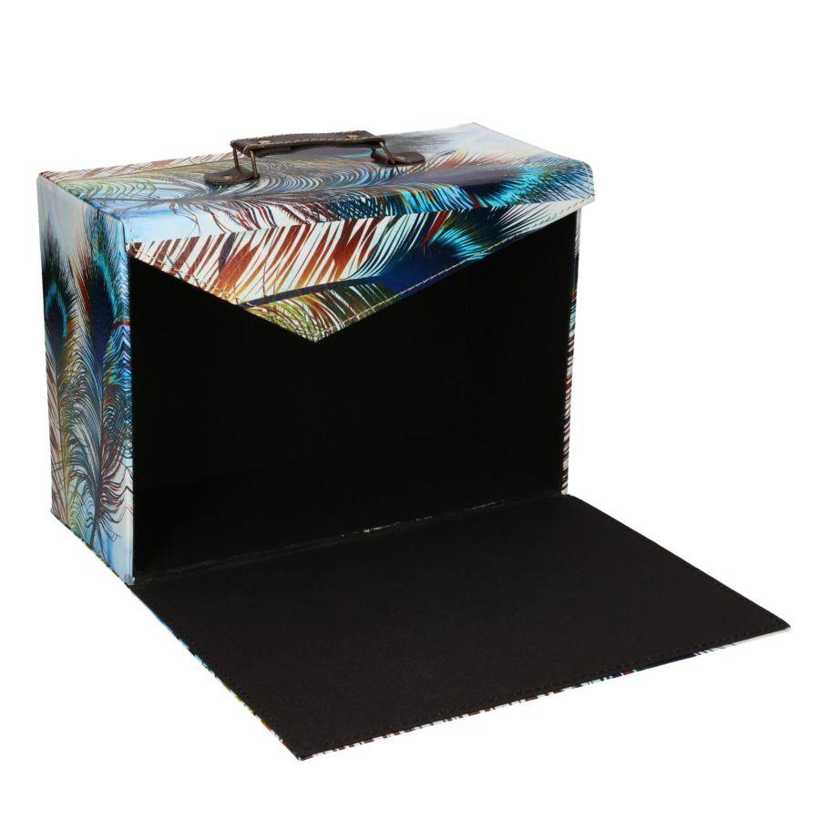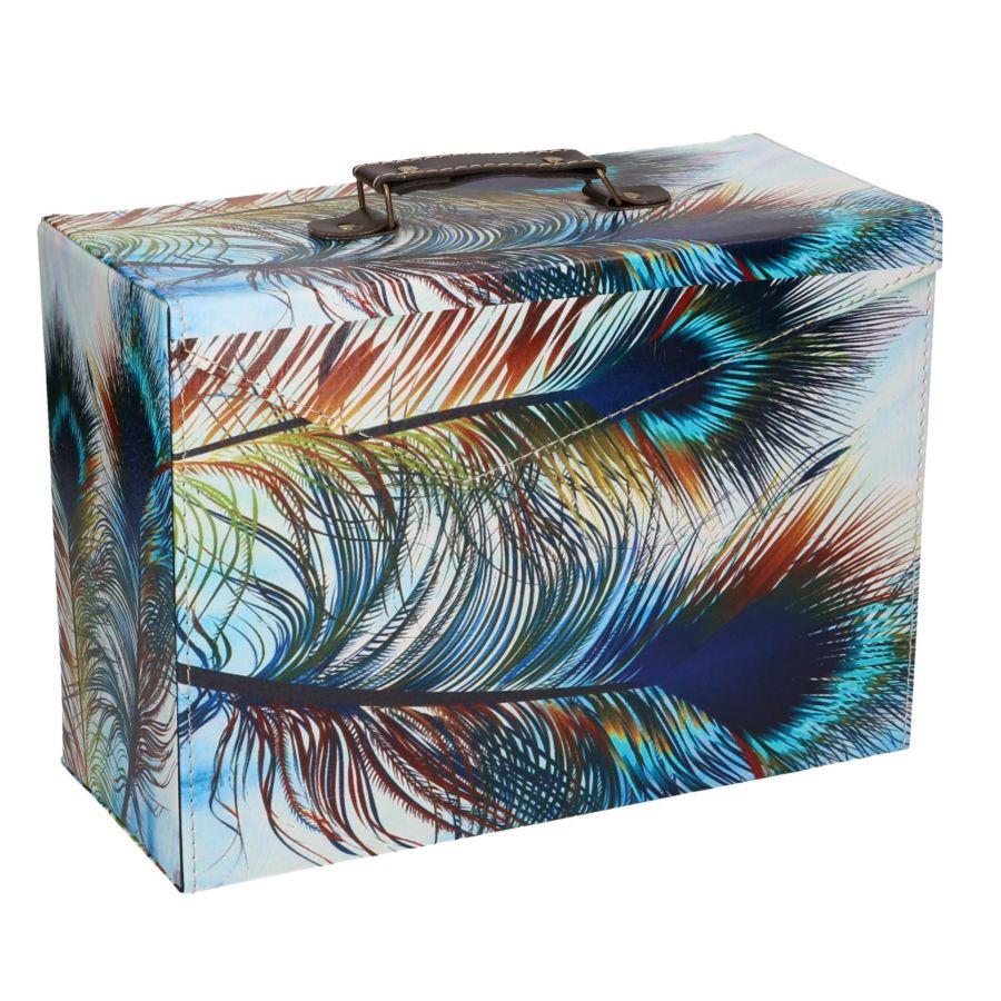 Scatola valigia piume pavone rettangolare cm 34x15xh24