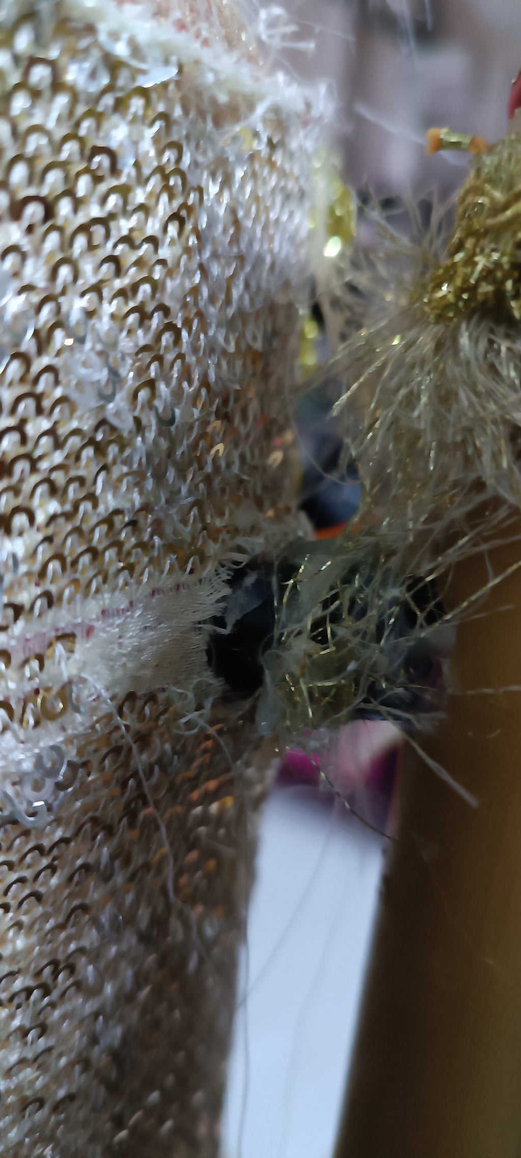 Schiaccianoci natalizio a forma di soldato con vestiti in morbido tessuto di colore oro e bastone.