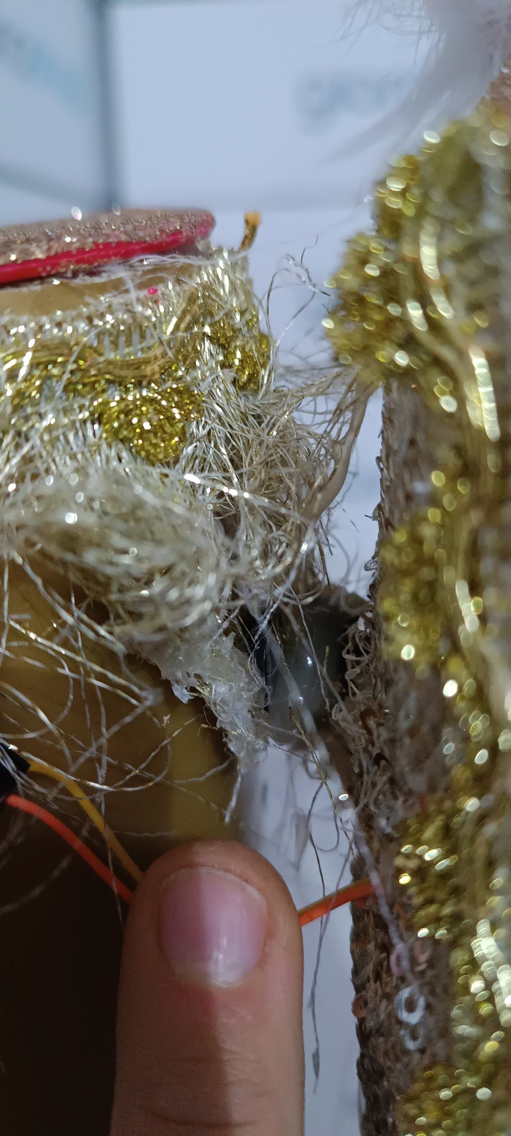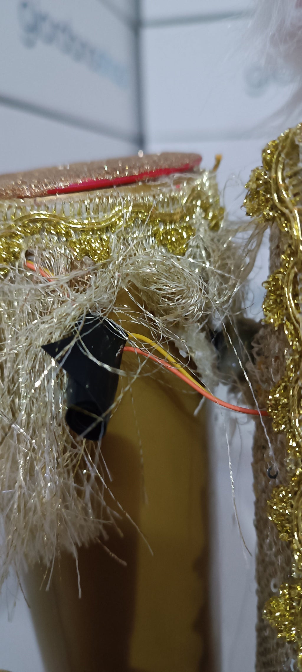• Provvisto di un sistema elettronico, attivabile con apposito tasto posto alla base, che gli permettono di muovere la bocca e le braccia