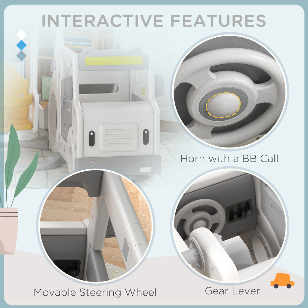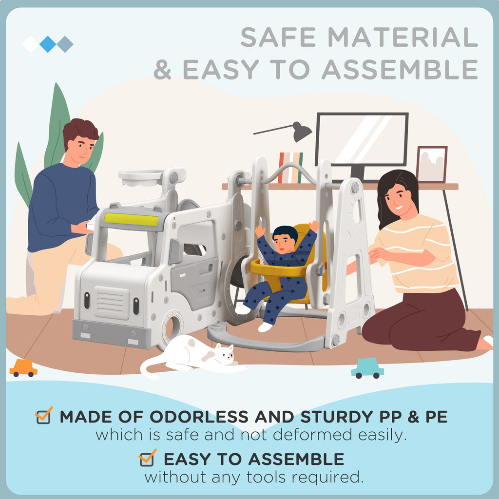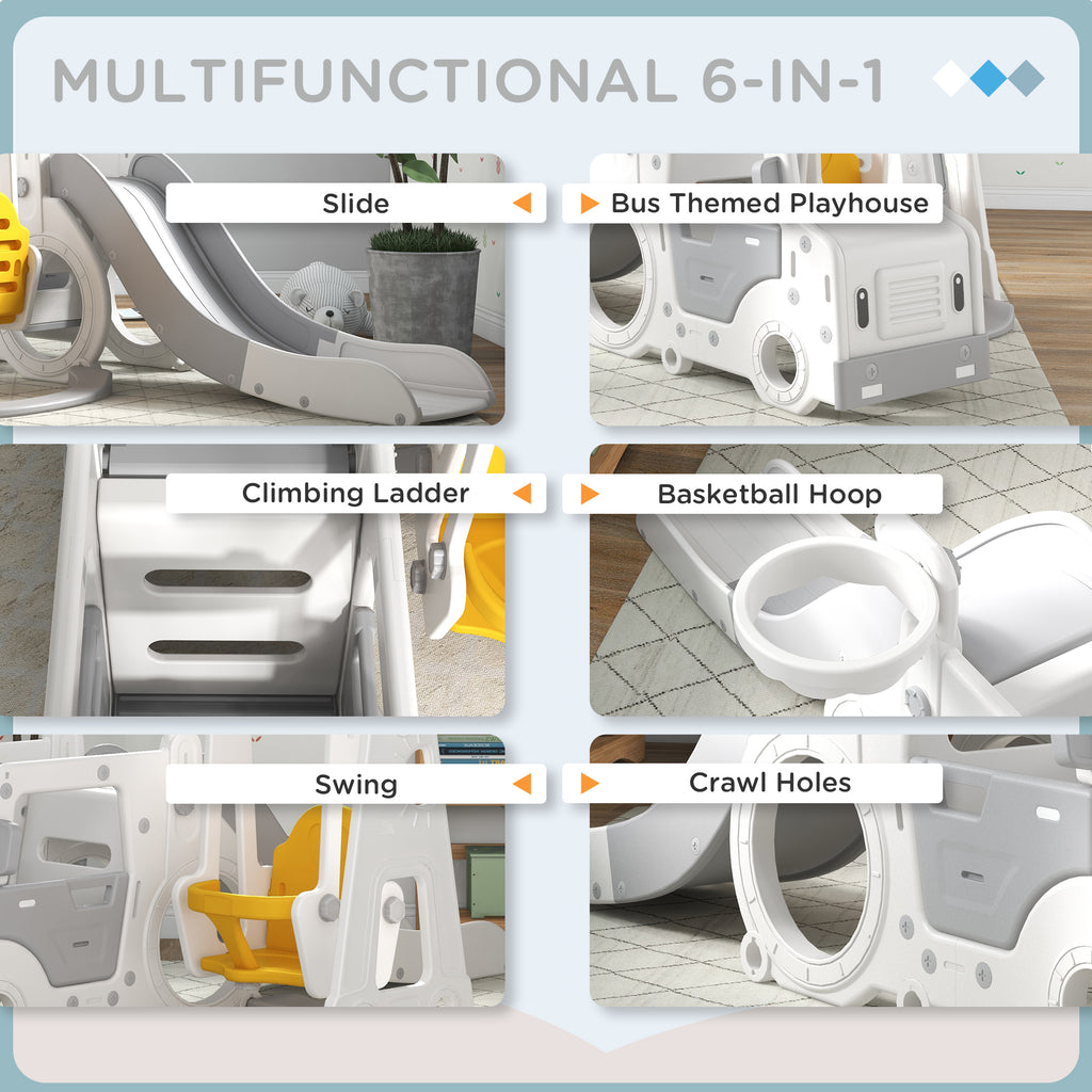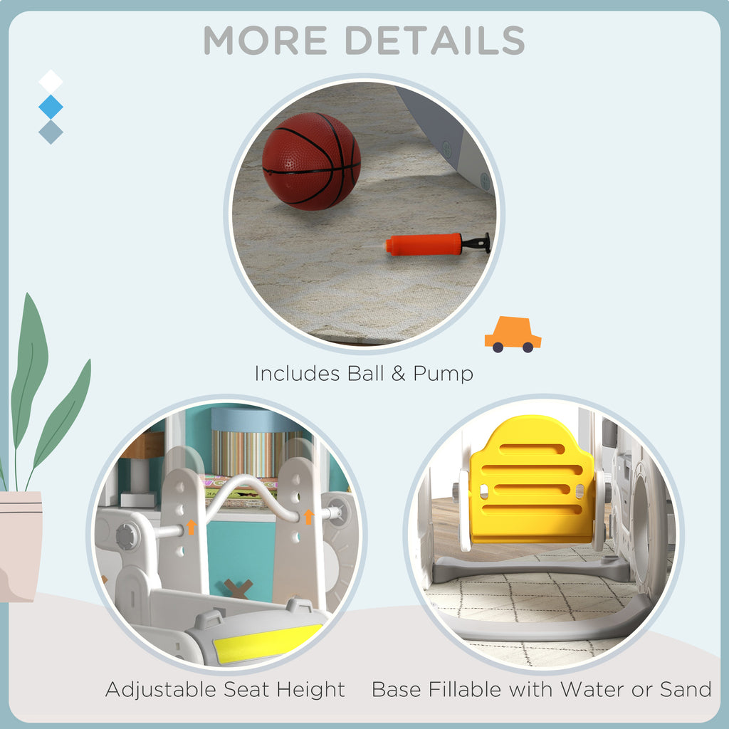 - Gioco per bambini 6 in 1 composto da scivolo, altalena, canestro, auto, scaletta e aperture per gattonare
