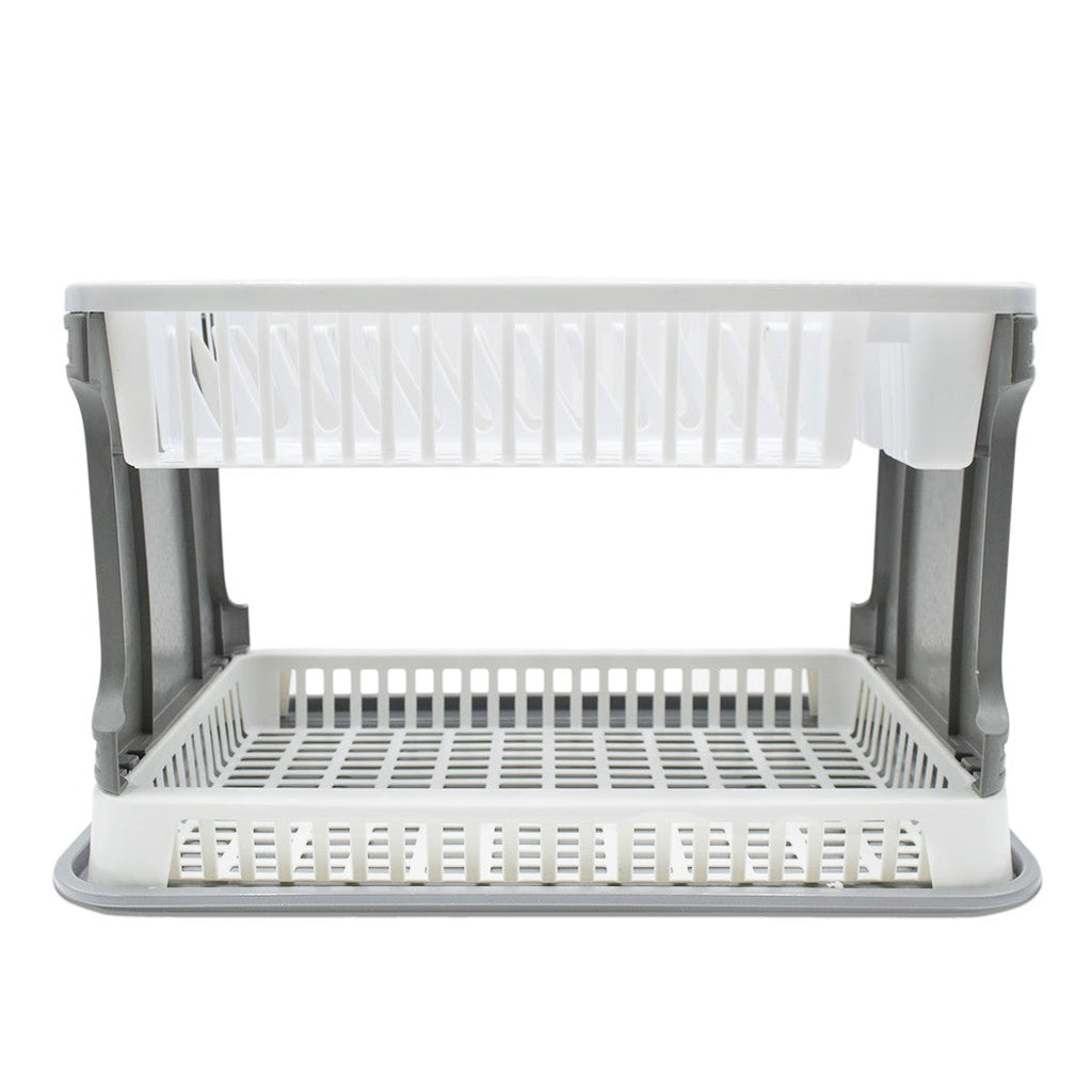 Scolapiatti dalla grande capacità, design salvaspazio a 2 livelli, perfetto per essere posizionato nell'area del lavandino. Lo strato superiore può contenere fino a 12 piatti, lo strato inferiore offre spazio drenante per tazze e bicchieri.