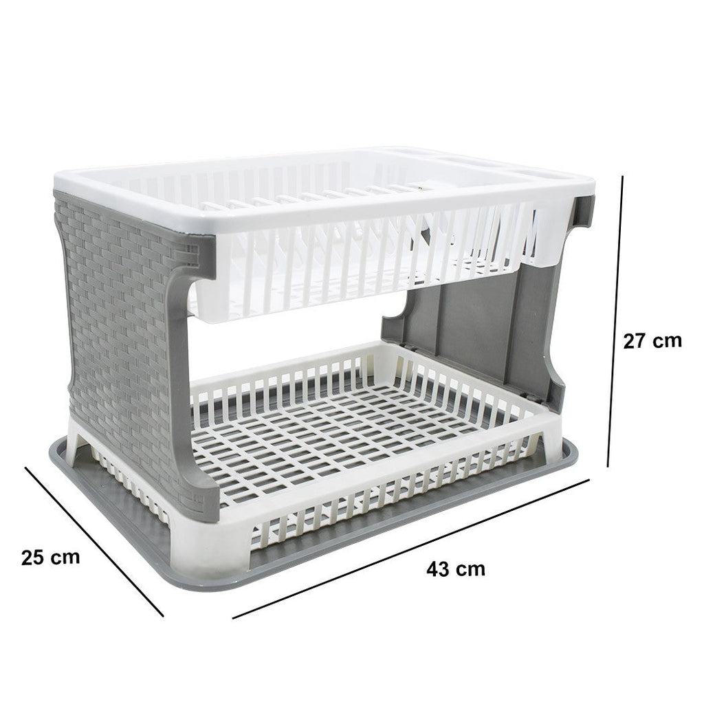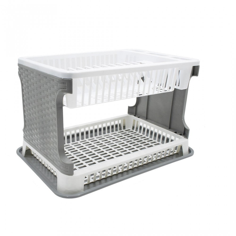Scolapiatti da Appoggio in Plastica 2 Livelli in Rattan per Lavello Cucina