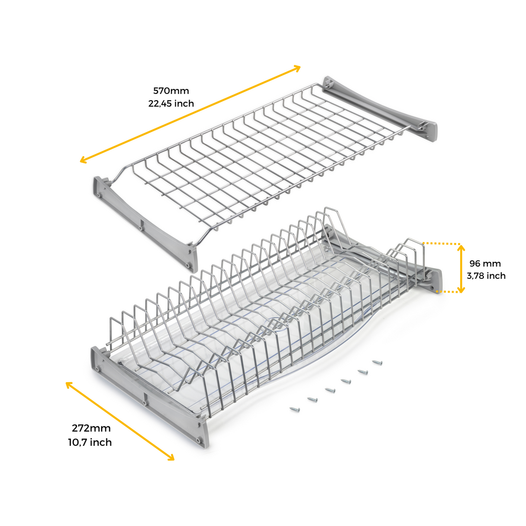 Si distingue per la grande capacità di contenimento e per la facilità di montaggio: basta avvitare i tasselli al mobile della cucina e posizionare i vassoi. Realizzato in acciaio verniciato antiruggine, con ancoraggi in plastica grigia all'unità e vassoio di raccolta in plastica trasparente.
