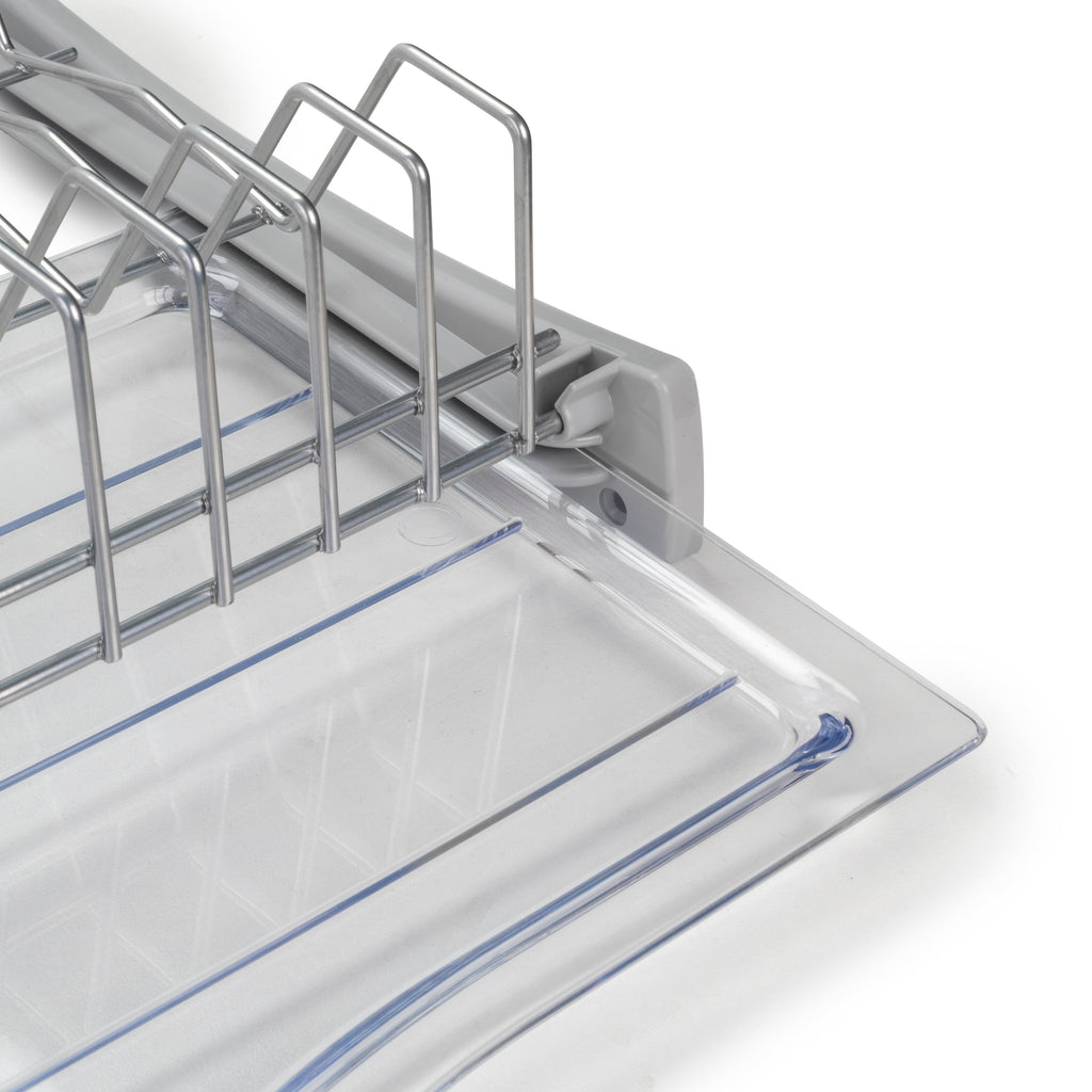 Lo scolapiatti Suprastar è progettato per organizzare le stoviglie negli armadietti della cucina. Ha un ripiano per i bicchieri e un altro per i piatti, con un vassoio di raccolta che impedisce all'acqua di danneggiare i mobili.