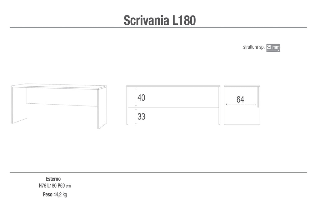 Scrivania 180x76x69 cm Ossido Bianco