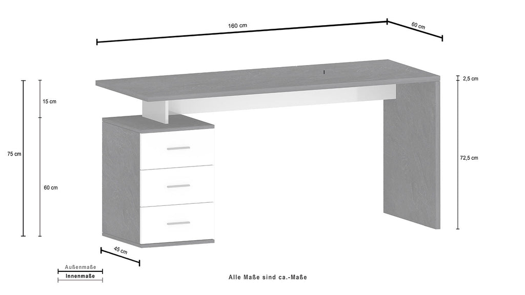 Scrivania 3 Cassetti 160x60x75 cm New Selina Bianco Lucido