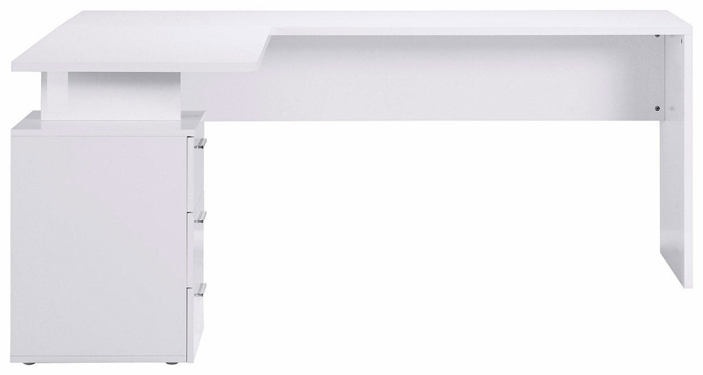- Struttura angolare con piano d’appoggio principale e cassettiera con 3 cassetti scorrevoli