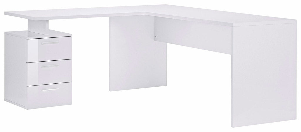 Scrivania Angolare 180/160x60x75cm cm New Selina Bianco Lucido e Ardesia
