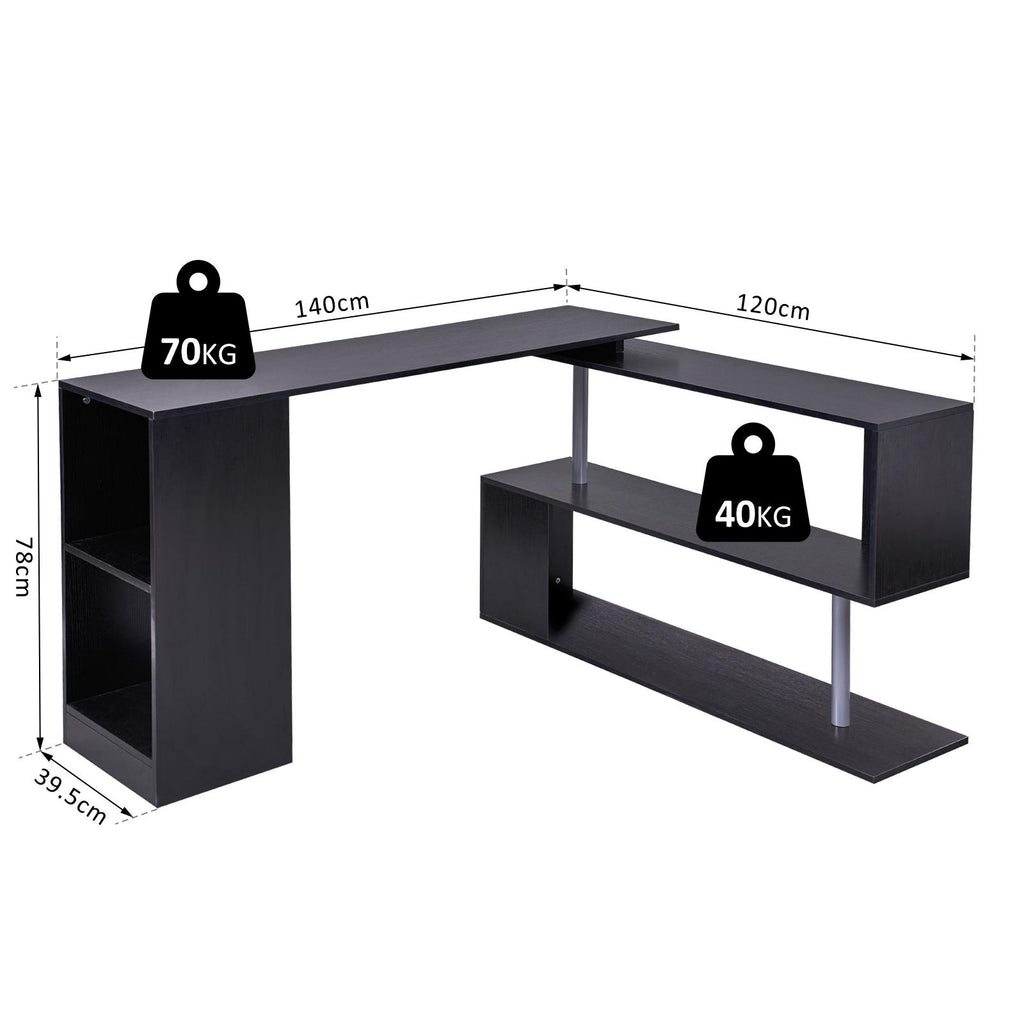 Scrivania Angolare da Ufficio 140x120x78,2 cm con Cassetti e Scaffale Girevole Nera