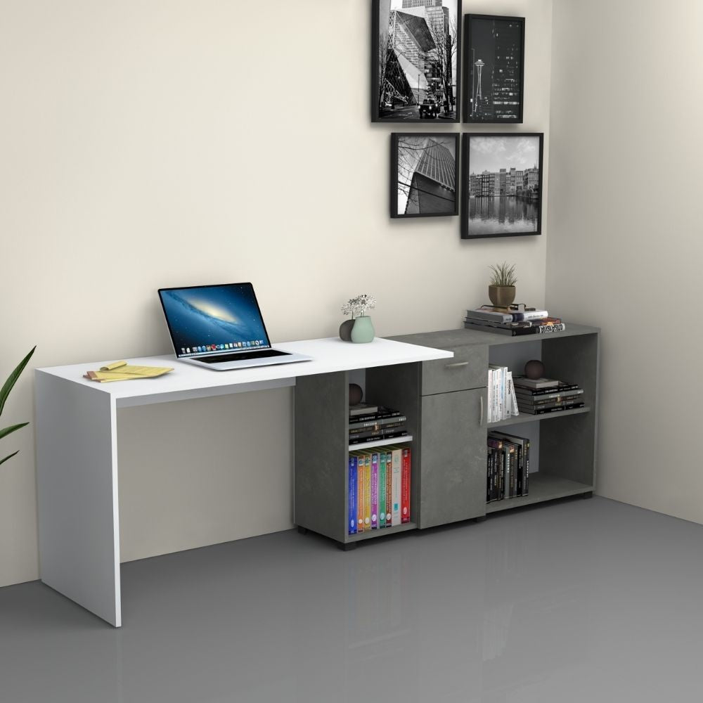 Scrivania Angolare Reversibile 140-210x60x74 cm Mia Cemento Bianco