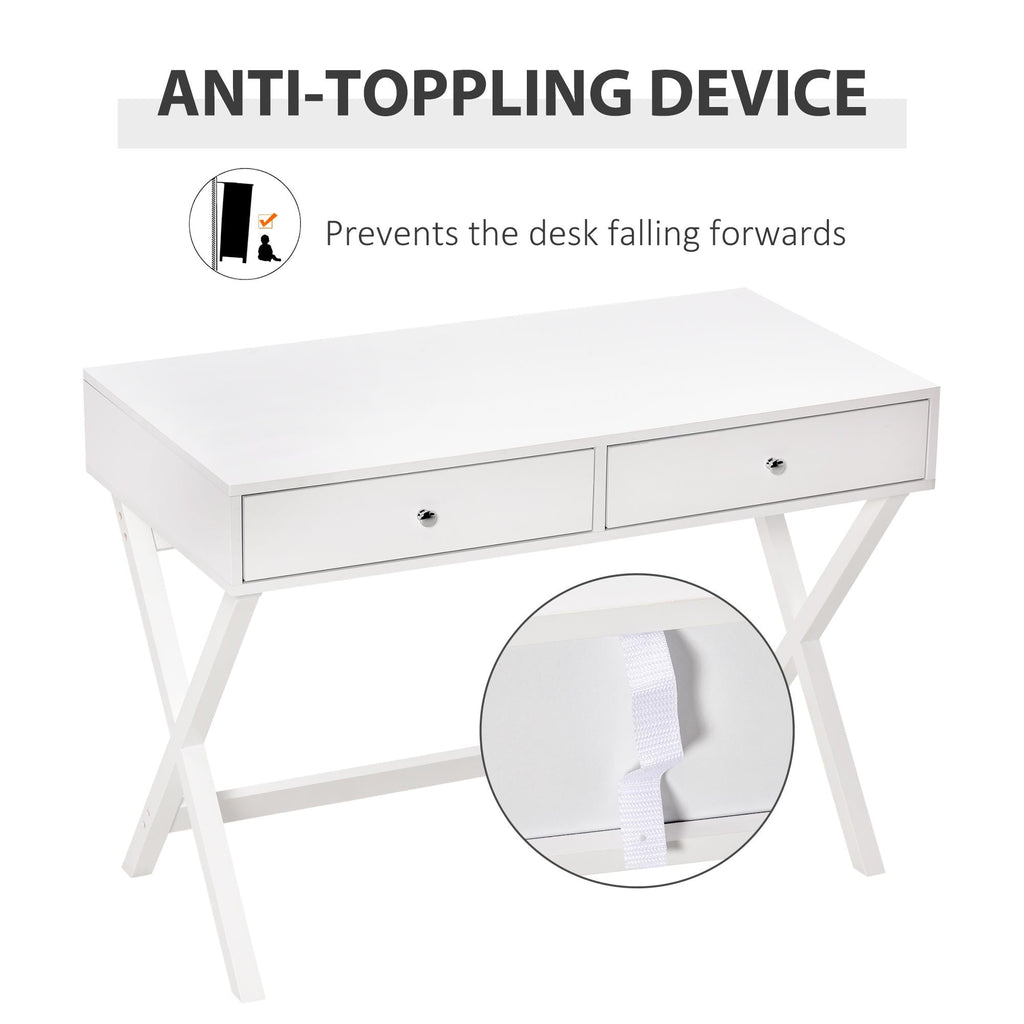 Scrivania con 2 Cassetti 106x55x75 cm in MDF Bianco
