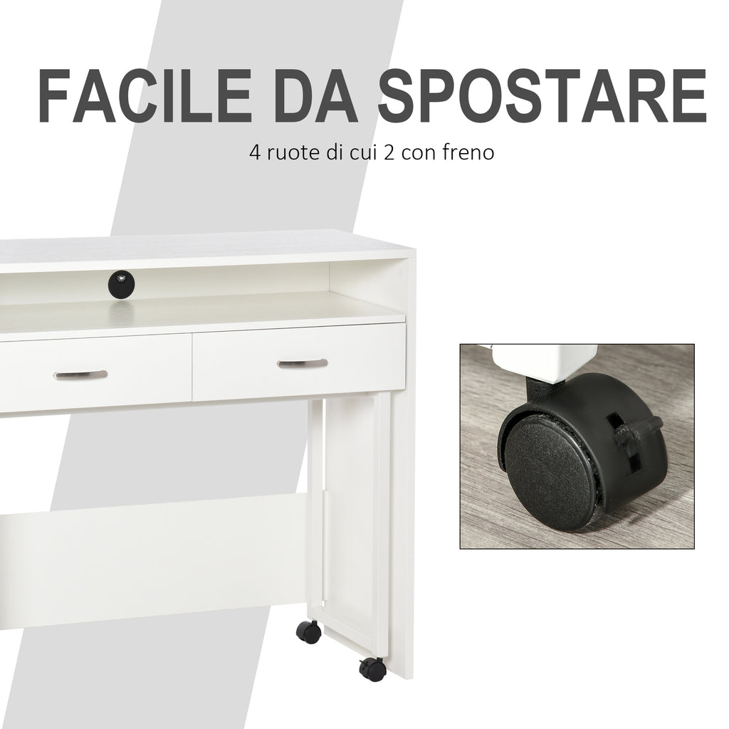 Scrivania con Cassetti e Ruote 100x36x88 cm in Metallo e MDF Bianca