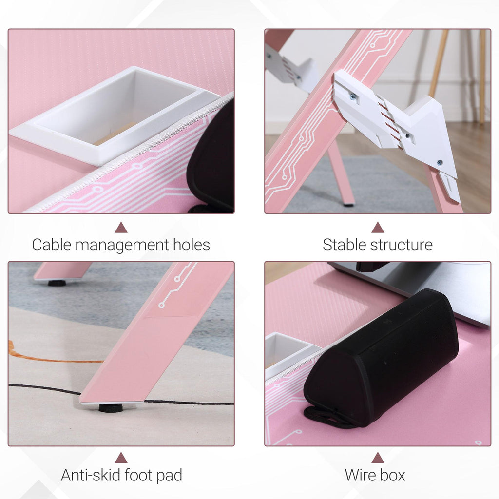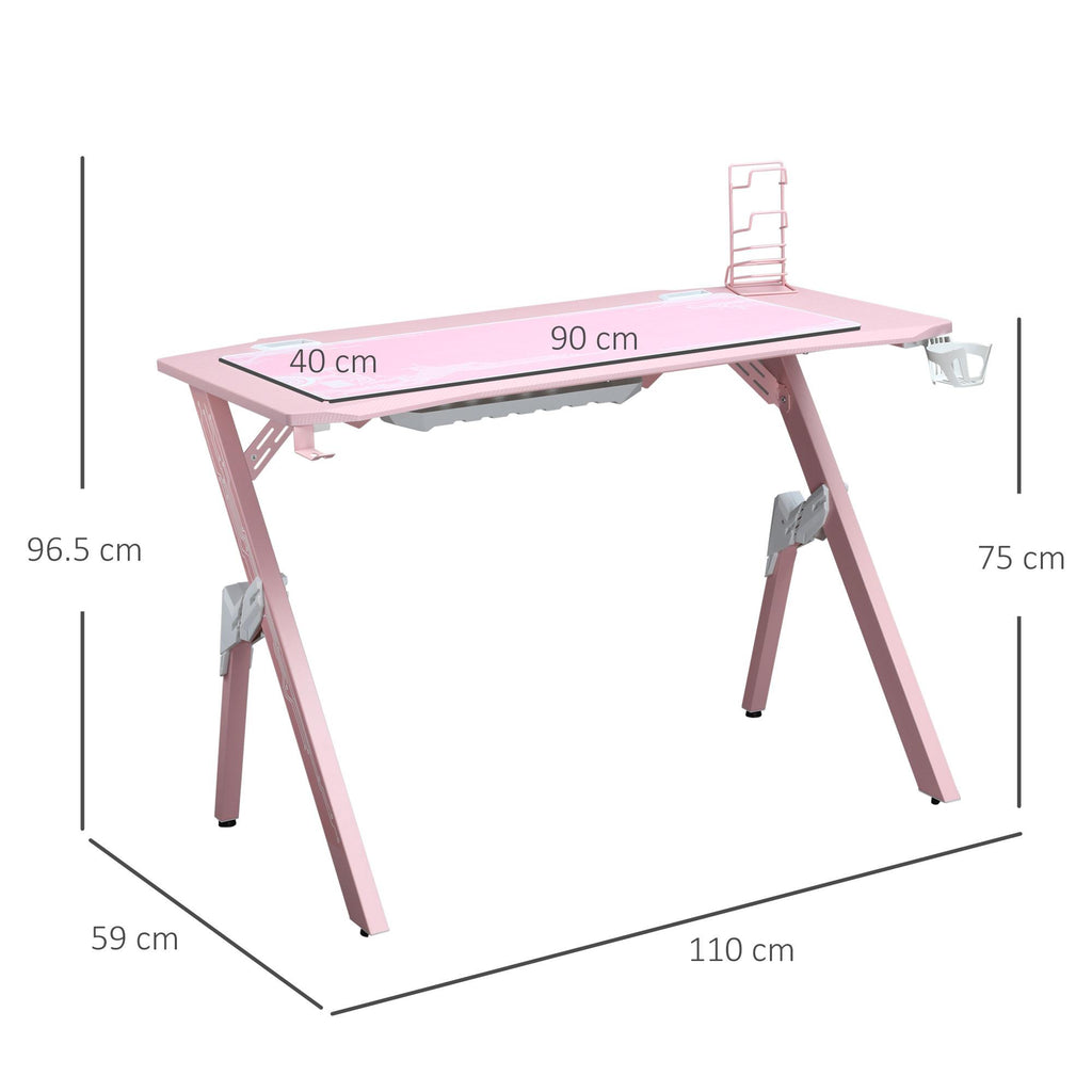 Scrivania da Gaming 110x59x75 cm in MDF e Metallo Rosa