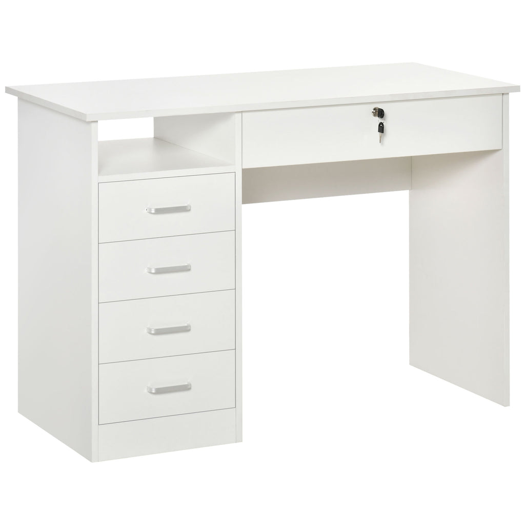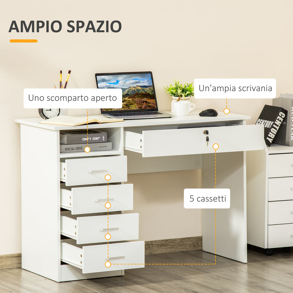 Scrivania da Ufficio 110x50x76 cm 5 Cassetti in Legno Bianco