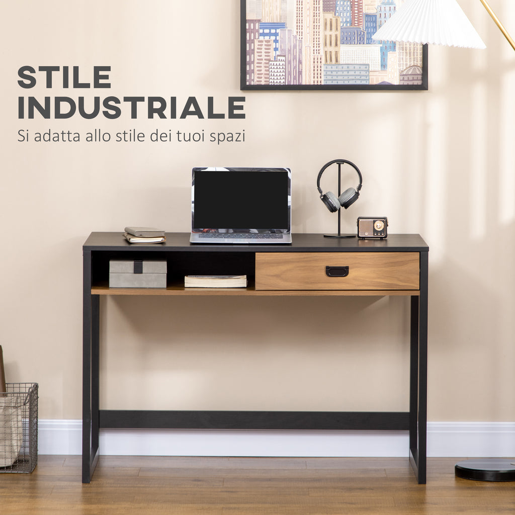 Scrivania da Ufficio 110x50x76 cm in Legno Truciolare Noce e Nero
