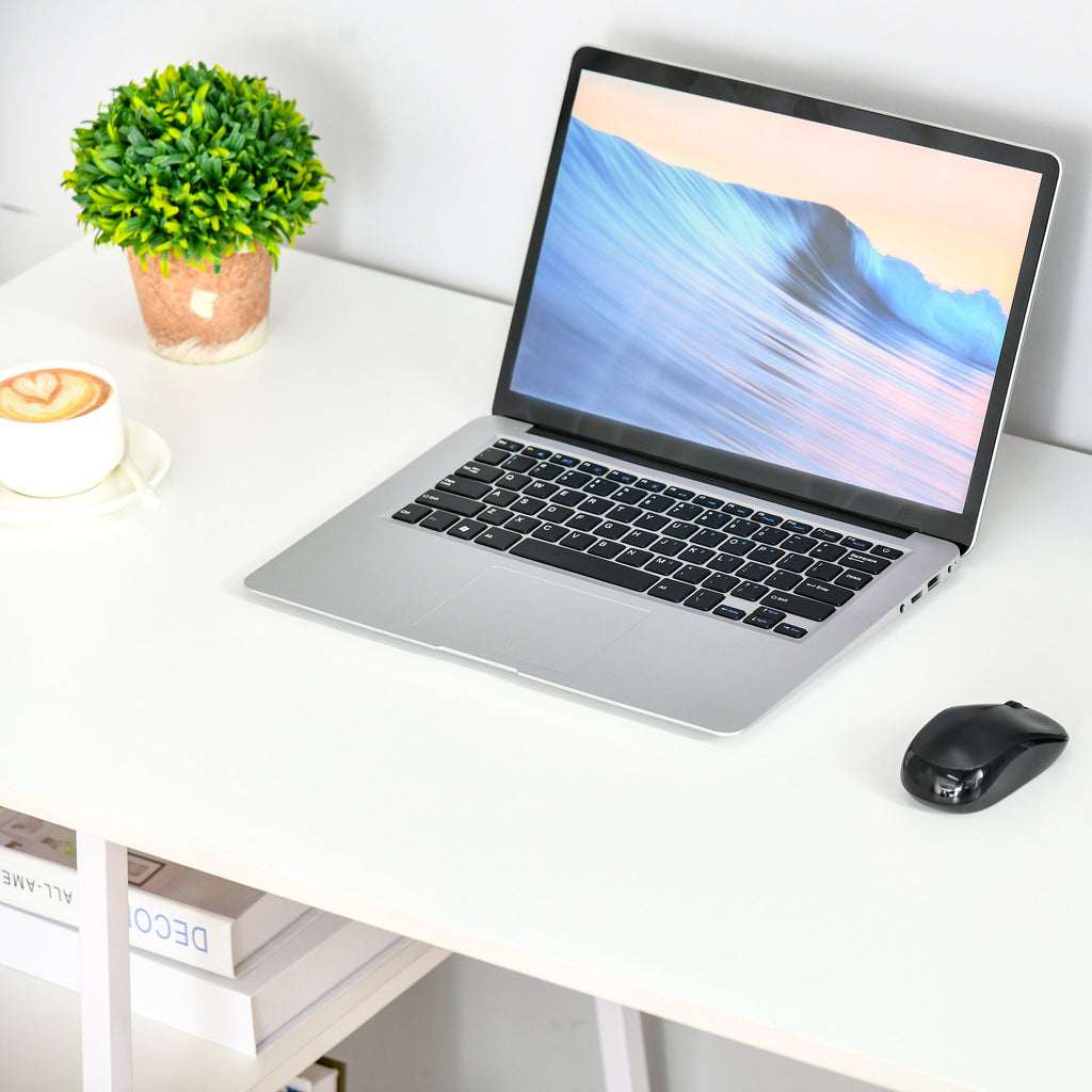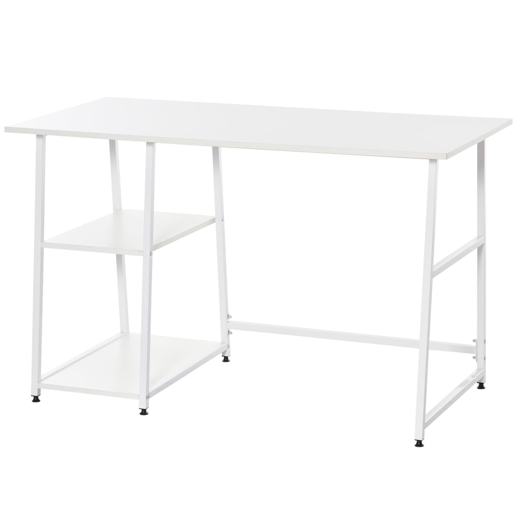 La scrivania moderna è la postazione perfetta per il lavoro in ufficio o per lo smart working a casa tua! Realizzata con legno truciolare e telaio in metallo, questa scrivania salvaspazio ha un design compatto e ti offre 2 comodi ripiani per riporre tutto ciò di cui hai bisogno. Grazie al colore bianco e alle linee minimaliste, puoi abbinare la scrivania a ogni tipo di arredamento.
