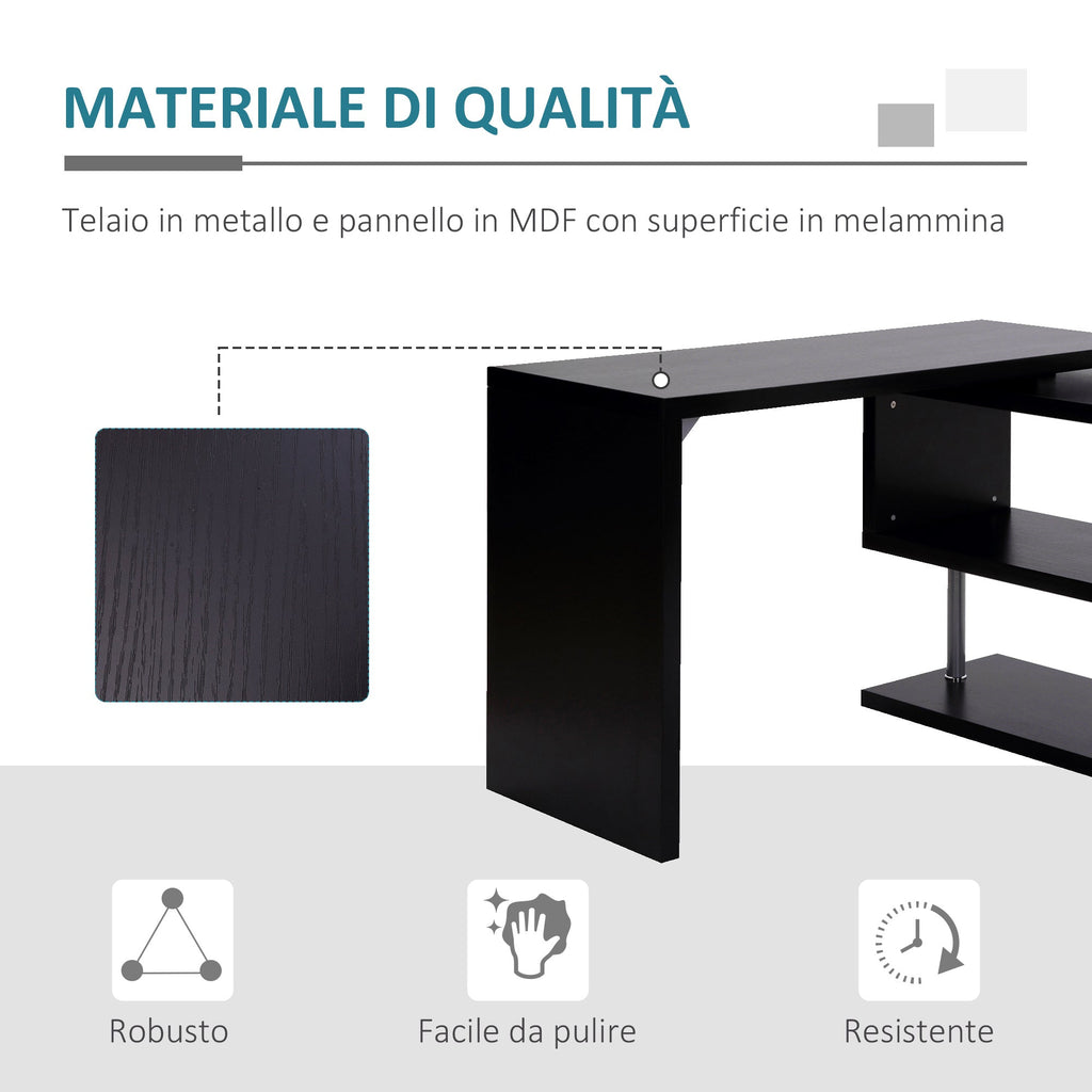 Scrivania da Ufficio Angolare per Computer con Scaffali in Legno Nero 120x106x75 cm