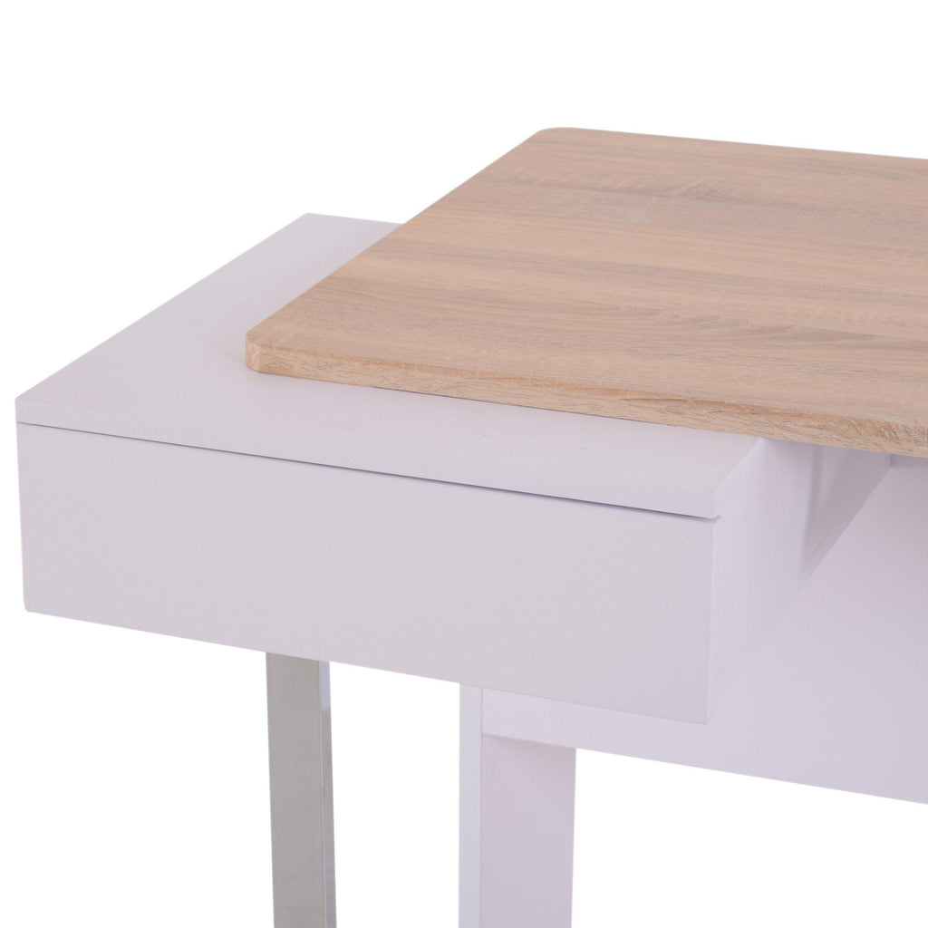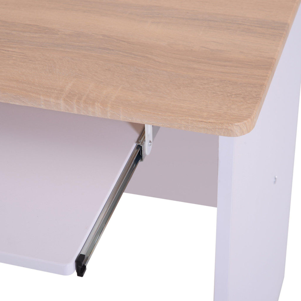 Scrivania da Ufficio con Ripiano Tastiera in Legno Bianco e Rovere 130x70x75.5 cm