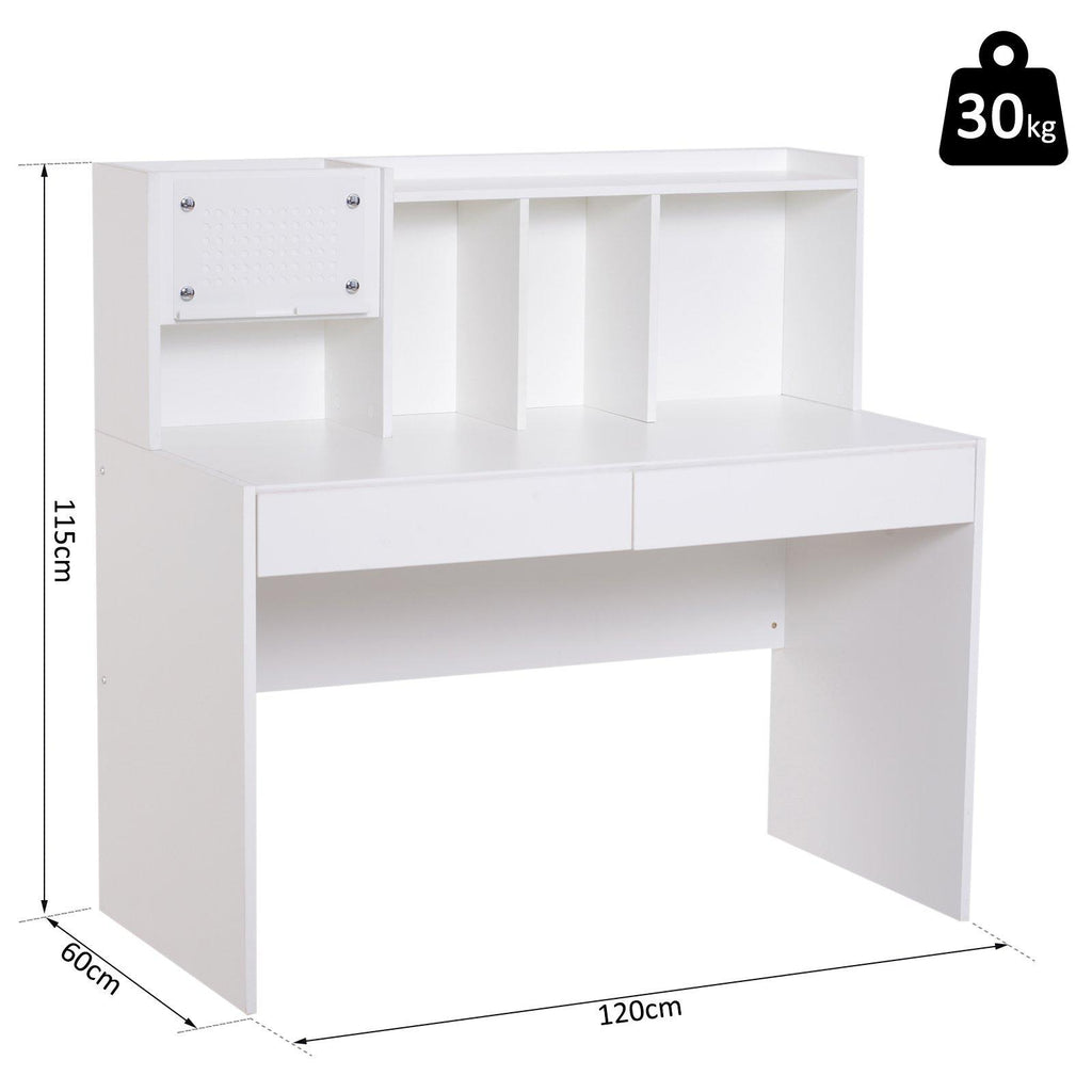Scrivania da Ufficio in Legno 5 Scomparti e 2 Cassetti Bianco 120x60x115 cm