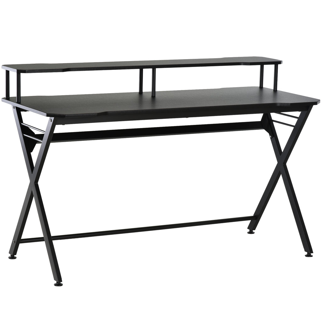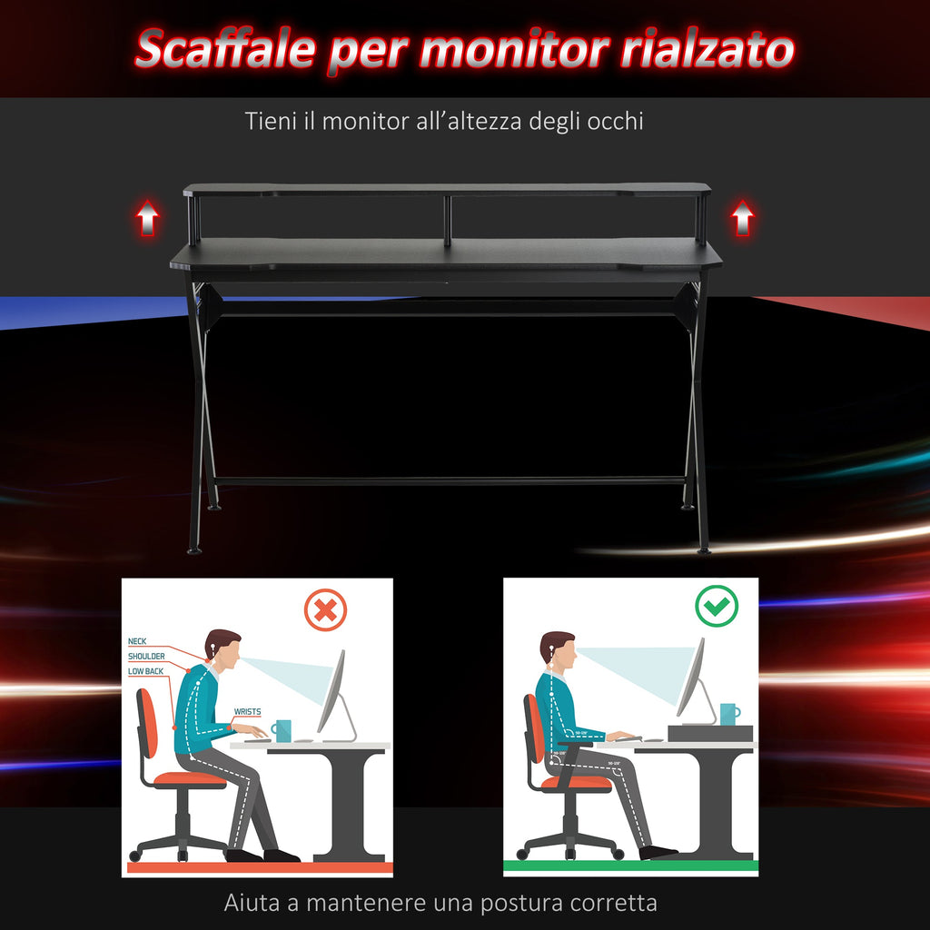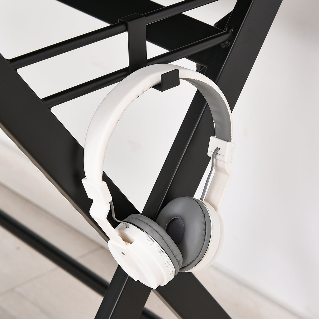 Ecco una scrivania pratica e funzionale per tutti gli amanti dei videogiochi! È dotata di un piano rialzato su cui puoi sistemare uno o più monitor, e mantenere una postura corretta durante le ore passate al computer. Il piano di lavoro è ampio e versatile: puoi usarlo per posizionare il PC, il mouse e la tastiera. Inoltre, include un pratico gancio laterale per appoggiare le cuffie e averle sempre a portata di mano. La superficie è costruita in MDF e le gambe sono in metallo per offrirti il massimo della stabilità.