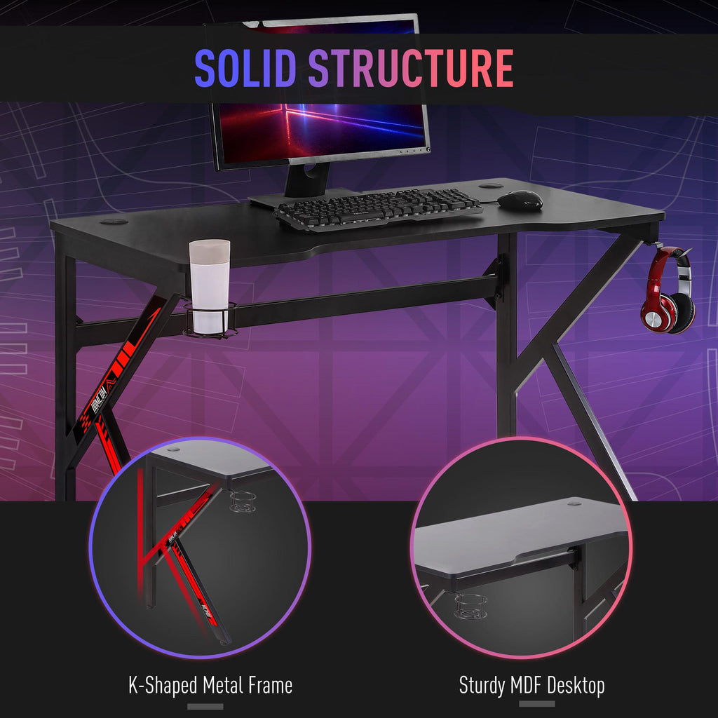 Scrivania Gaming 120x60x73 cm in MDF e Metallo Nero