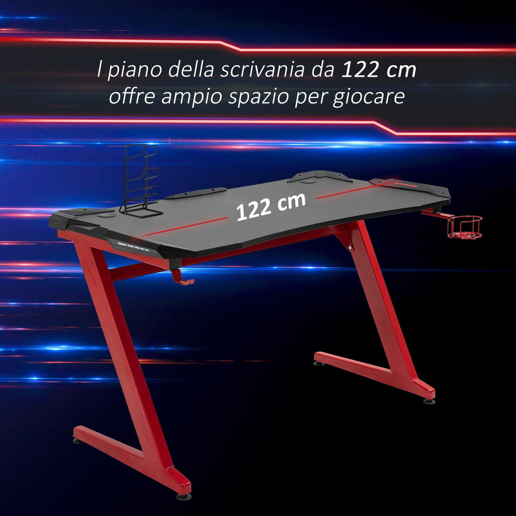 Scrivania Gaming 122x66x96 cm in Metallo e Legno Nero e Rosso